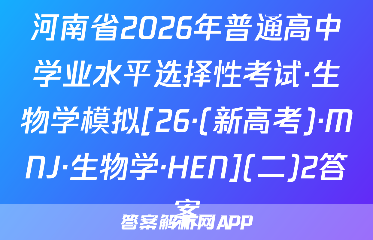 河南省2026年普通高中学业水平选择性考试·生物学模拟[26·(新高考)·MNJ·生物学·HEN](二)2答案