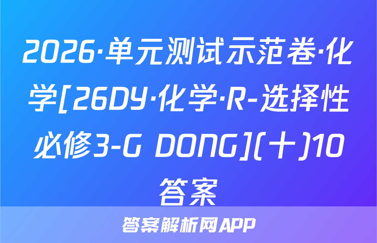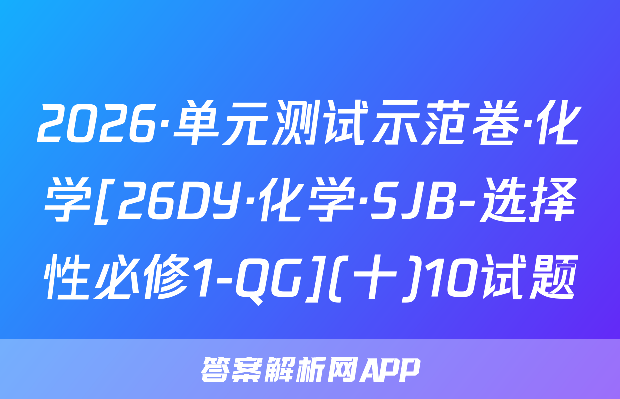 2026·卷行天下·周测卷·化学[26ZC·化学·R-选择性必修1-SD](十)10答案