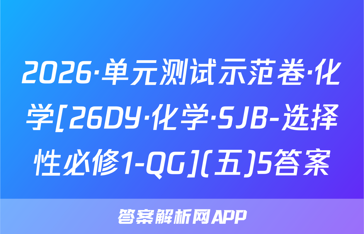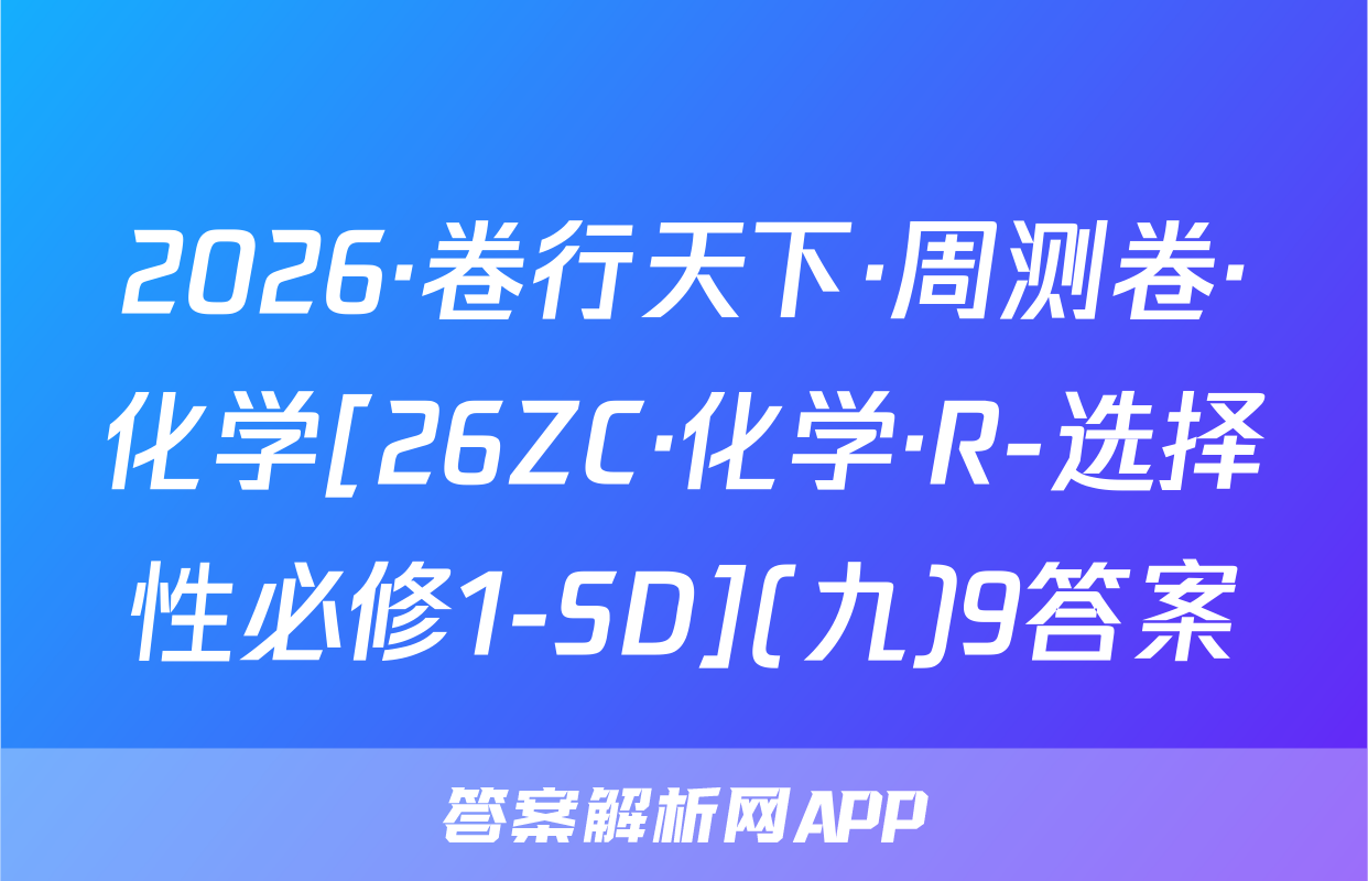 2026·卷行天下·周测卷·化学[26ZC·化学·R-选择性必修1-SD](九)9答案