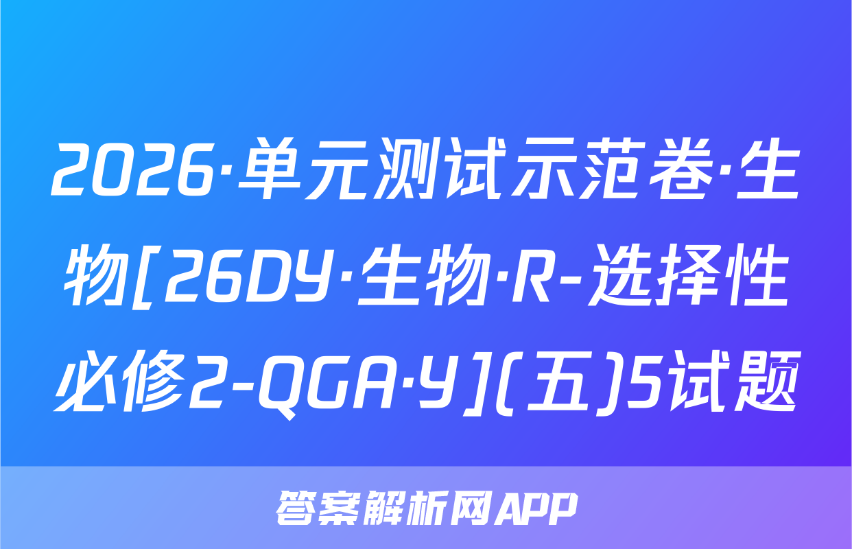 2026·卷行天下·周测卷·生物[26ZC·生物·R-必修1-QGA·N](五)5答案