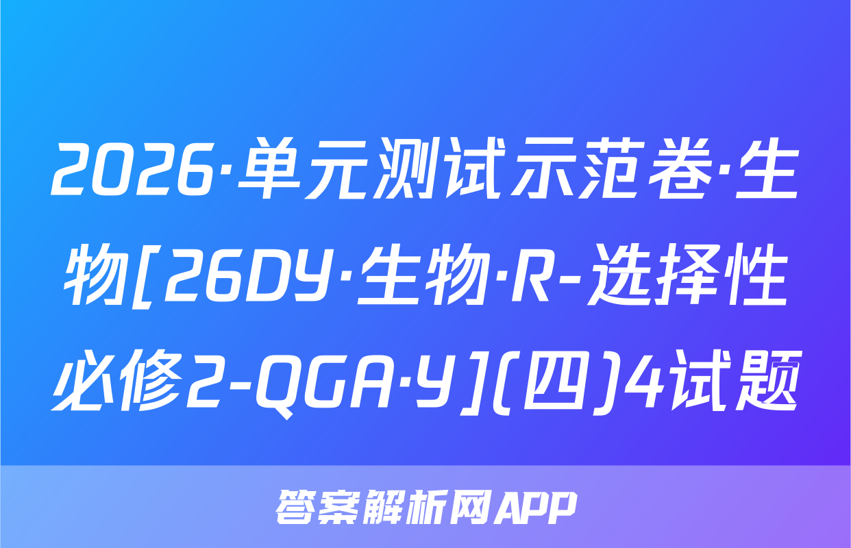2026·卷行天下·周测卷·生物[26ZC·生物·R-必修1-QGA·N](四)4答案