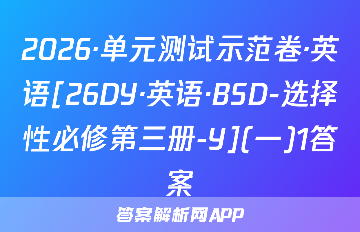 2026·单元测试示范卷·英语[26DY·英语·BSD-选择性必修第三册-Y](一)1答案