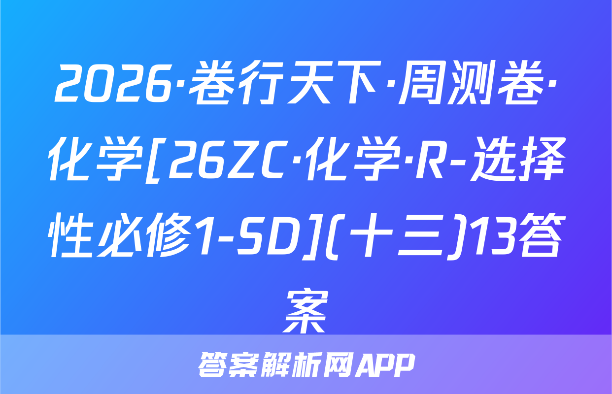 2026·卷行天下·周测卷·化学[26ZC·化学·R-选择性必修1-SD](十三)13答案