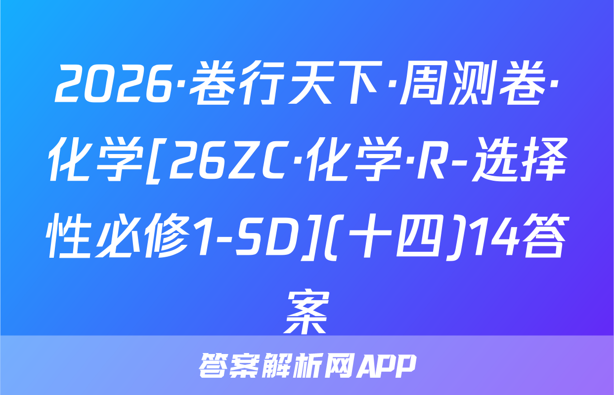 2026·卷行天下·周测卷·化学[26ZC·化学·R-选择性必修1-SD](十四)14答案