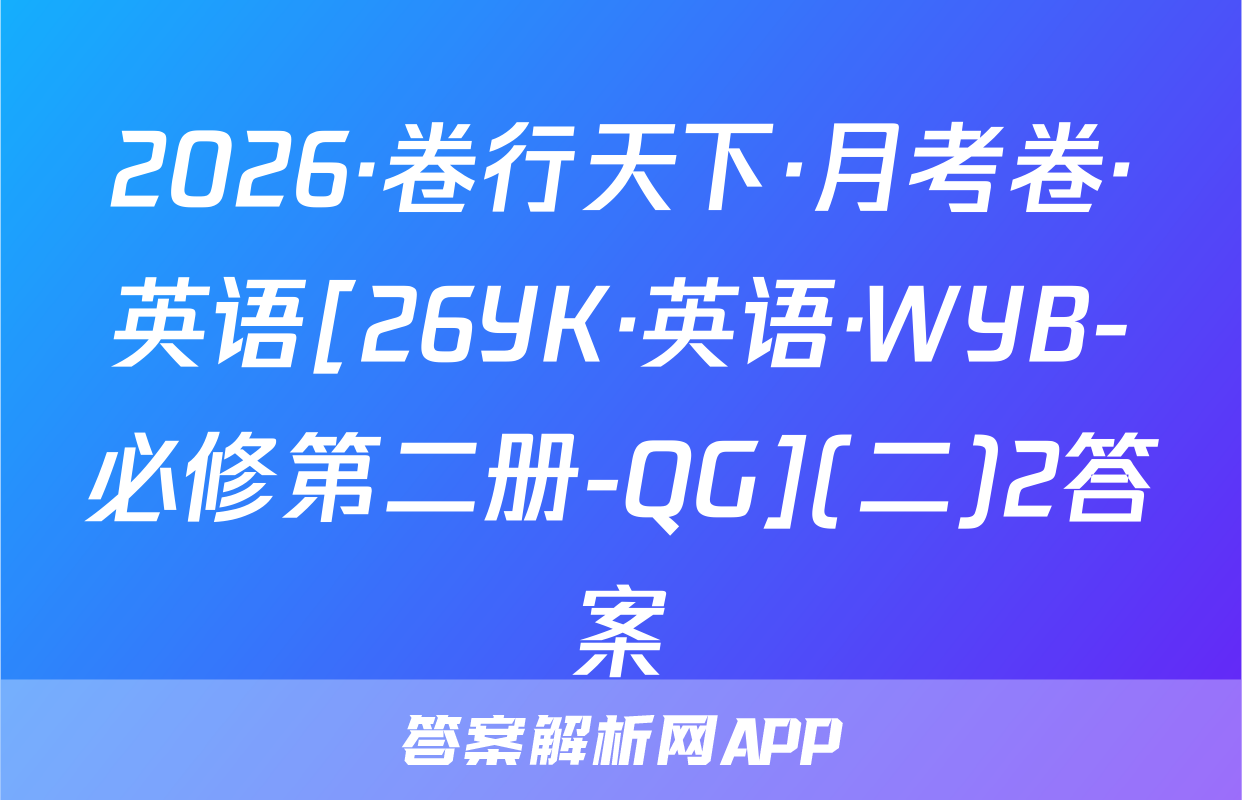 2026·卷行天下·月考卷·英语[26YK·英语·WYB-必修第二册-QG](二)2答案