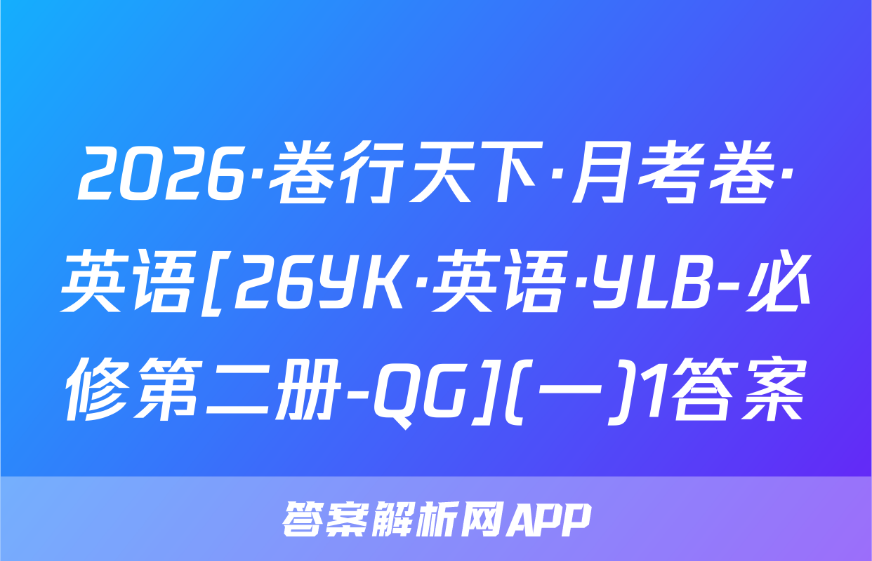 2026·卷行天下·月考卷·英语[26YK·英语·YLB-必修第二册-QG](一)1答案
