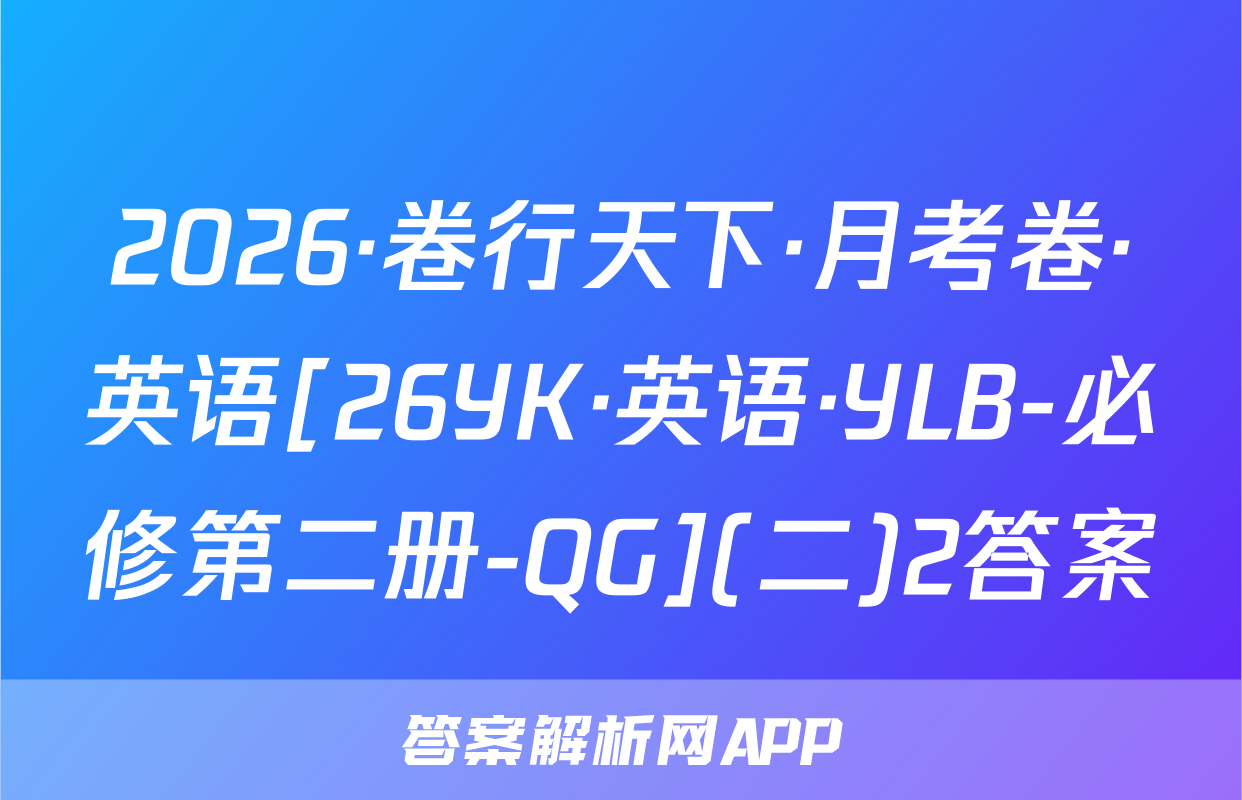 2026·卷行天下·月考卷·英语[26YK·英语·YLB-必修第二册-QG](二)2答案