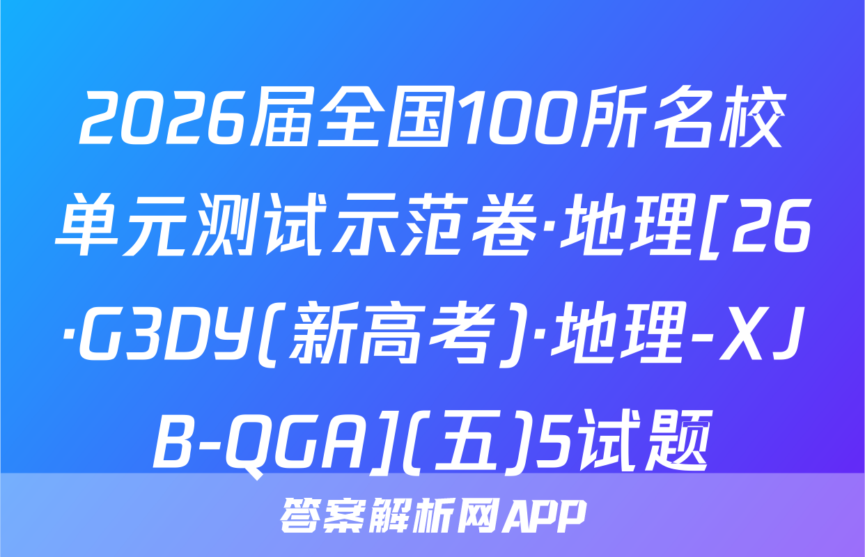 意事项精细1②③大单元设计使用黑色签字笔书写,请将选择题答全国①©0所名校高三单元测试示范卷,地理第四单元大气的组成与垂直分层,热力环流,常见的天气系统填入选择题后的答题表中(75分钟100分)考情分析,气的组成与垂直分层、热力环流、常见的天气系统为高考的常考内容,其中热】高考对接点环流和常见的天气系统为高频考点,大气的组成与垂直分层为轮考点,在选择欧和非选择题中均有可能出现4图单元疑难点热力环流的主要形式,不同天气系统控制下和同一天气系统不同位置的天气状况A滚动知识点天体类型和天体系统,地球运动的地理意义B典型情境题1-3,13一14,17,18D一、选择题(本大题共16小题,每小题3分,共8分。在每小题给出的四个选项中,只5该有一项是符合题目要求的)A2024年10月21日;夜室上演了“木星伴月”和猎户座流星雨两大天文奇观。位6龙于西班牙的特内里费岛(28°19N,1634w是世界顶级的观星地之一。下图为某天文爱好者绘制的该日安徽某地某时刻月球、木星和猎户座星云(距地球约1350光年)相对位置图,此时月亮升起高度约为15°,其凸面朝向东方。据此完成1一3题。两风霭+木星R月球猎户座线1该图示意的北京时间最接近A.17时B.19时C.22时D.24时2推测猎户座星云所属的天体系统是A.太阳系B.地月系C.银河系D.河外星系3.特内里费岛观测此次流星雨的条件较差,最可能的原因是该地A.出现沙尘天气B.昼长夜短C,近海有寒流流经D.月光过强空·25。26·G3DY(新高考)·地理(四)-XJB-QGA