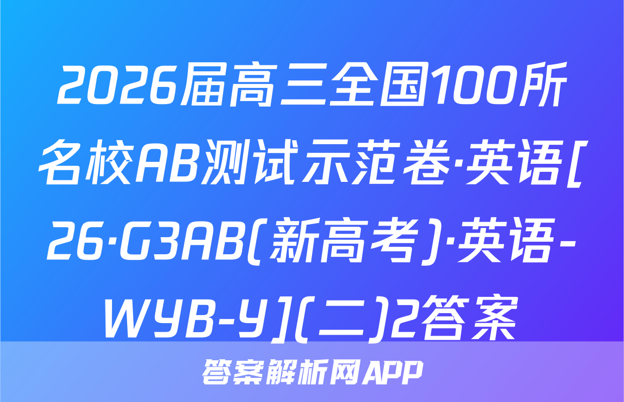 2026届高三全国100所名校AB测试示范卷·英语[26·G3AB(新高考)·英语-WYB-Y](二)2答案