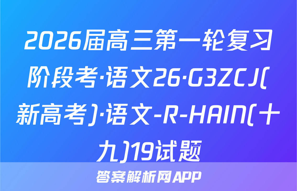 2026届高三第一轮复习阶段考·语文26·G3ZCJ(新高考)·语文-R-HAIN(十九)19试题