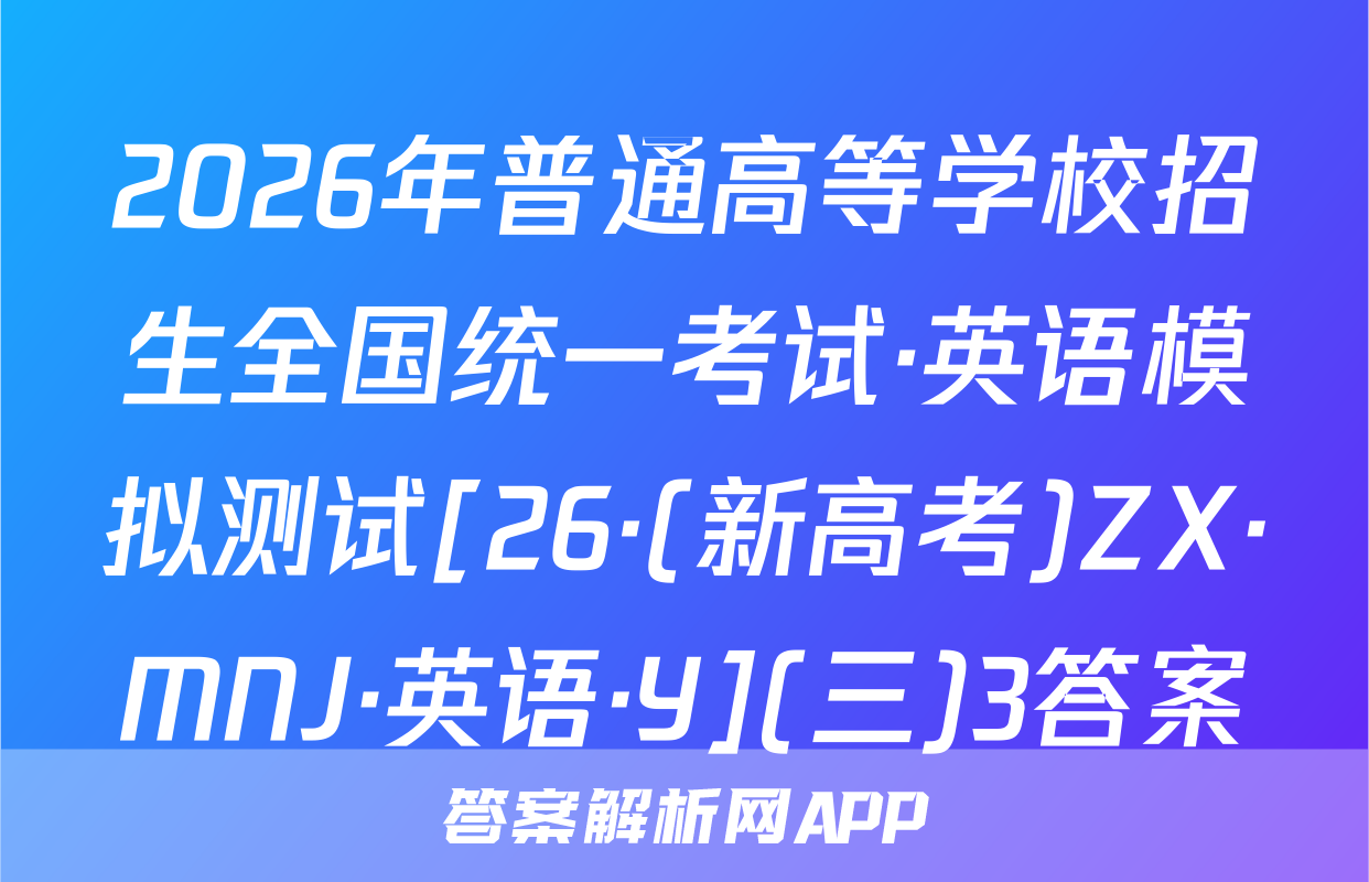2026年普通高等学校招生全国统一考试·英语模拟测试[26·(新高考)ZX·MNJ·英语·Y](三)3答案