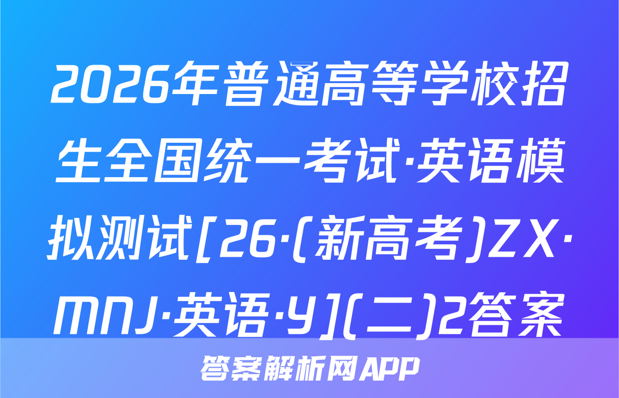 2026年普通高等学校招生全国统一考试·英语模拟测试[26·(新高考)ZX·MNJ·英语·Y](二)2答案