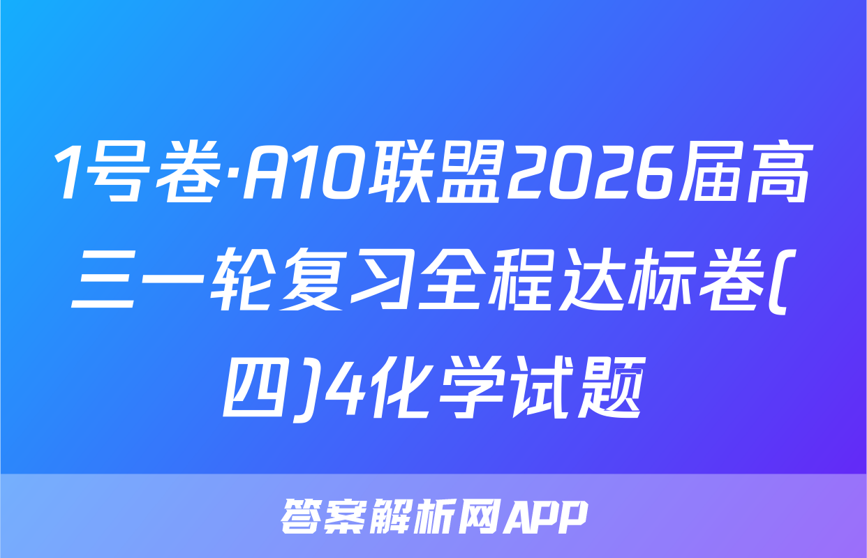 1号卷·A10联盟2026届高三一轮复习全程达标卷(四)4化学试题