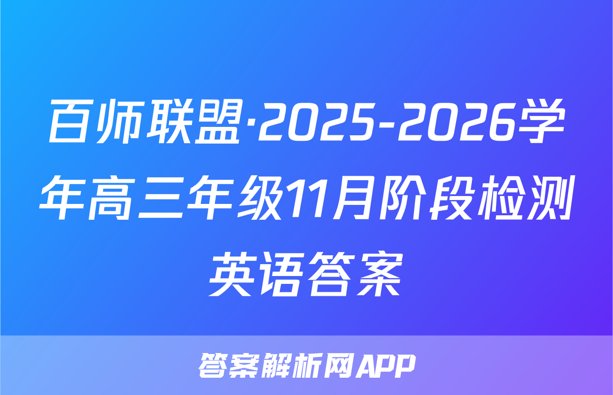 百师联盟·2025-2026学年高三年级11月阶段检测英语答案