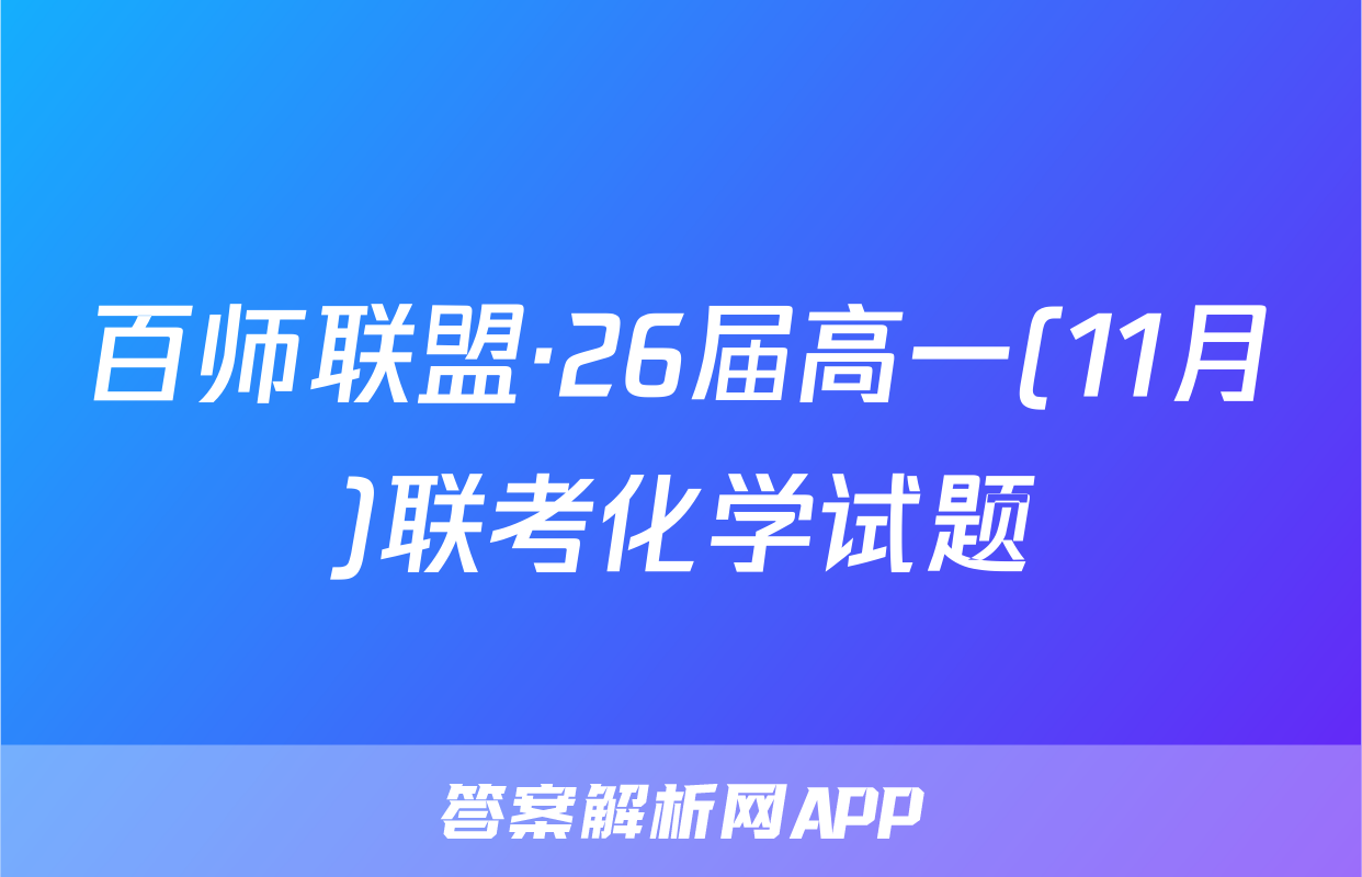 百师联盟·26届高一(11月)联考化学试题