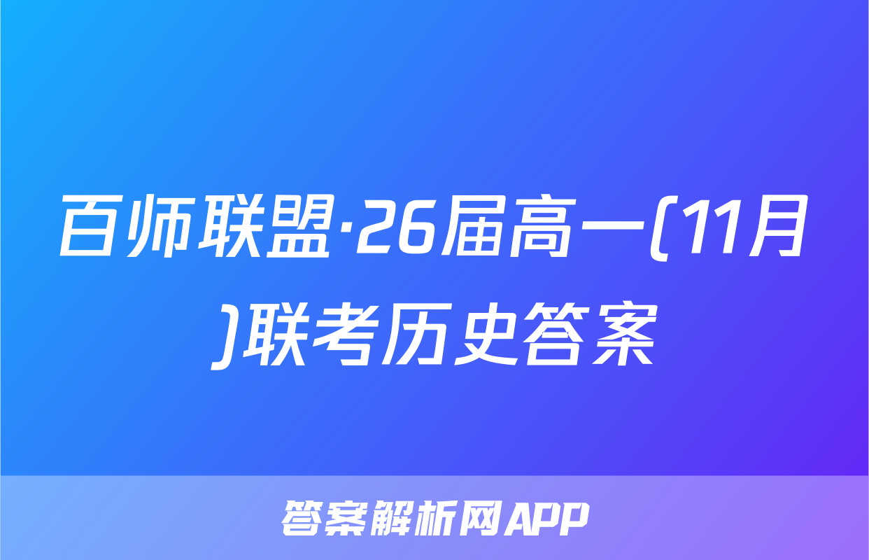 百师联盟·26届高一(11月)联考历史答案