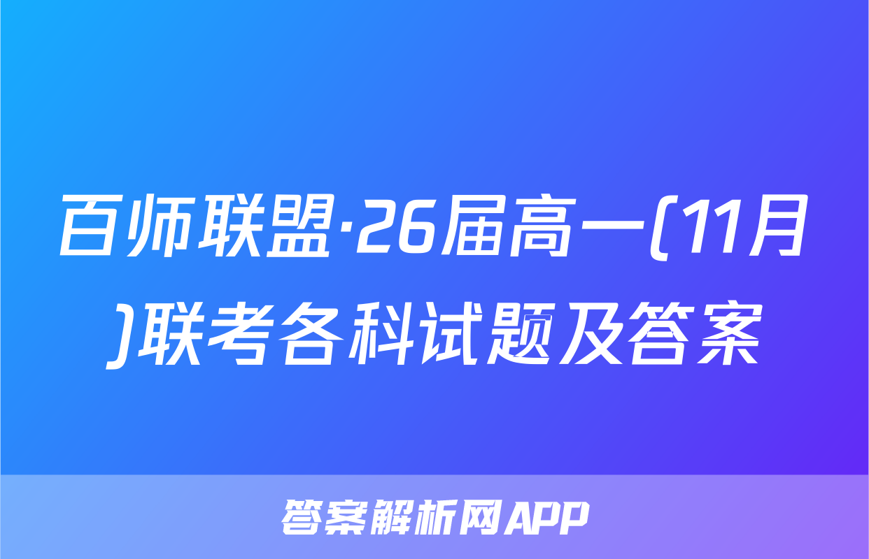 百师联盟·26届高一(11月)联考于2025-10-20开考,答案解析网将在考试结束后第一时间更新各科试题及答案。请保持关注。各科试题及答案汇总如下。