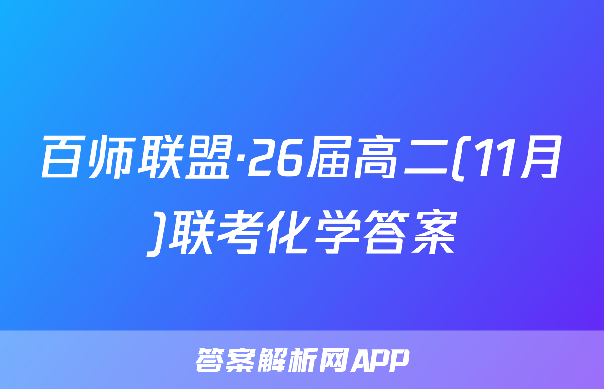 百师联盟·26届高二(11月)联考化学试题