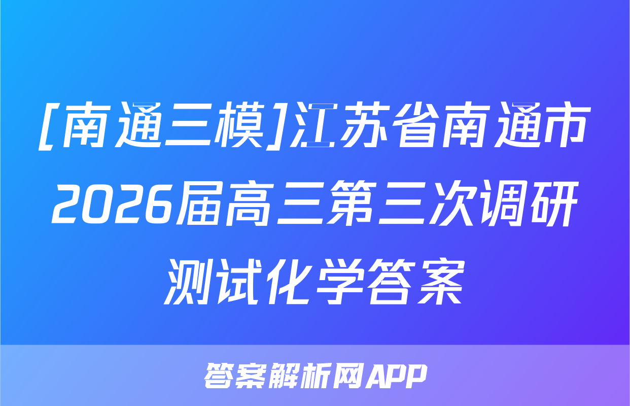 [南通三模]江苏省南通市2026届高三第三次调研测试化学试题