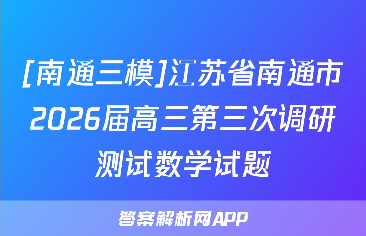[南通三模]江苏省南通市2026届高三第三次调研测试数学试题