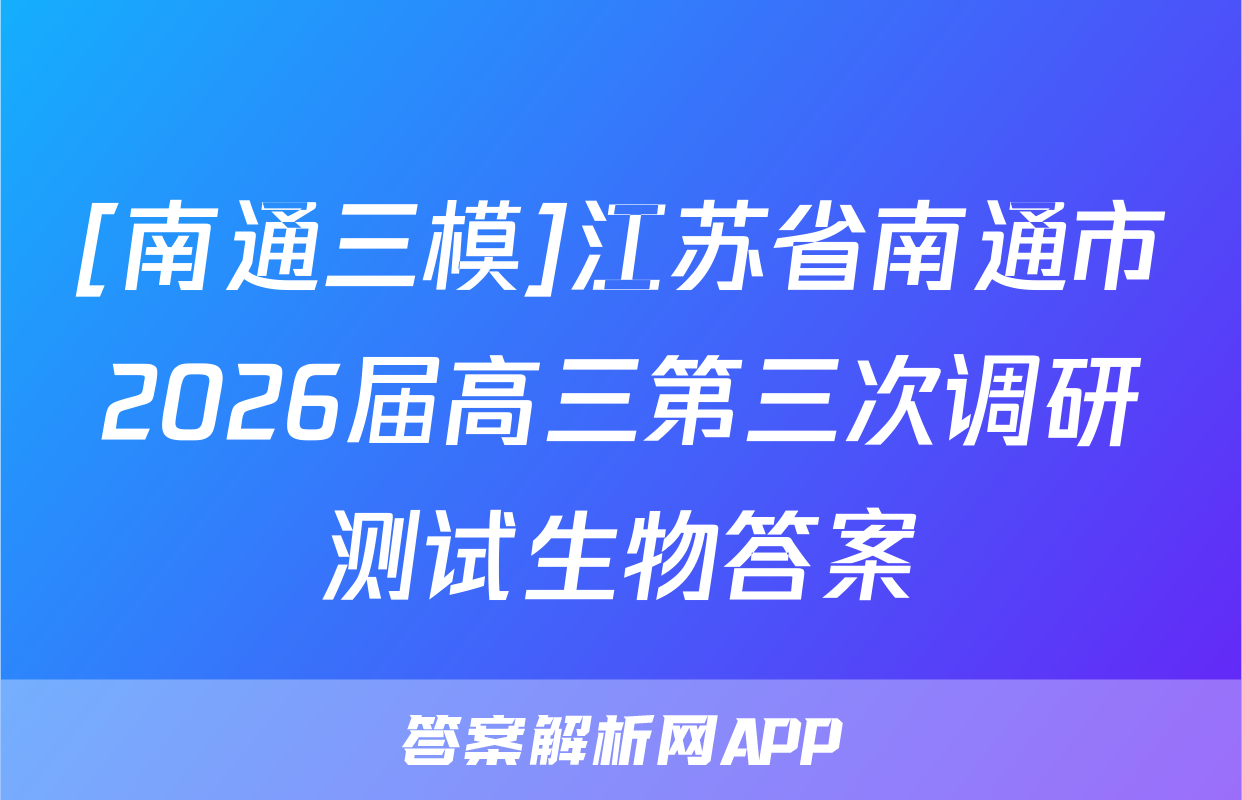 [南通三模]江苏省南通市2026届高三第三次调研测试生物试题