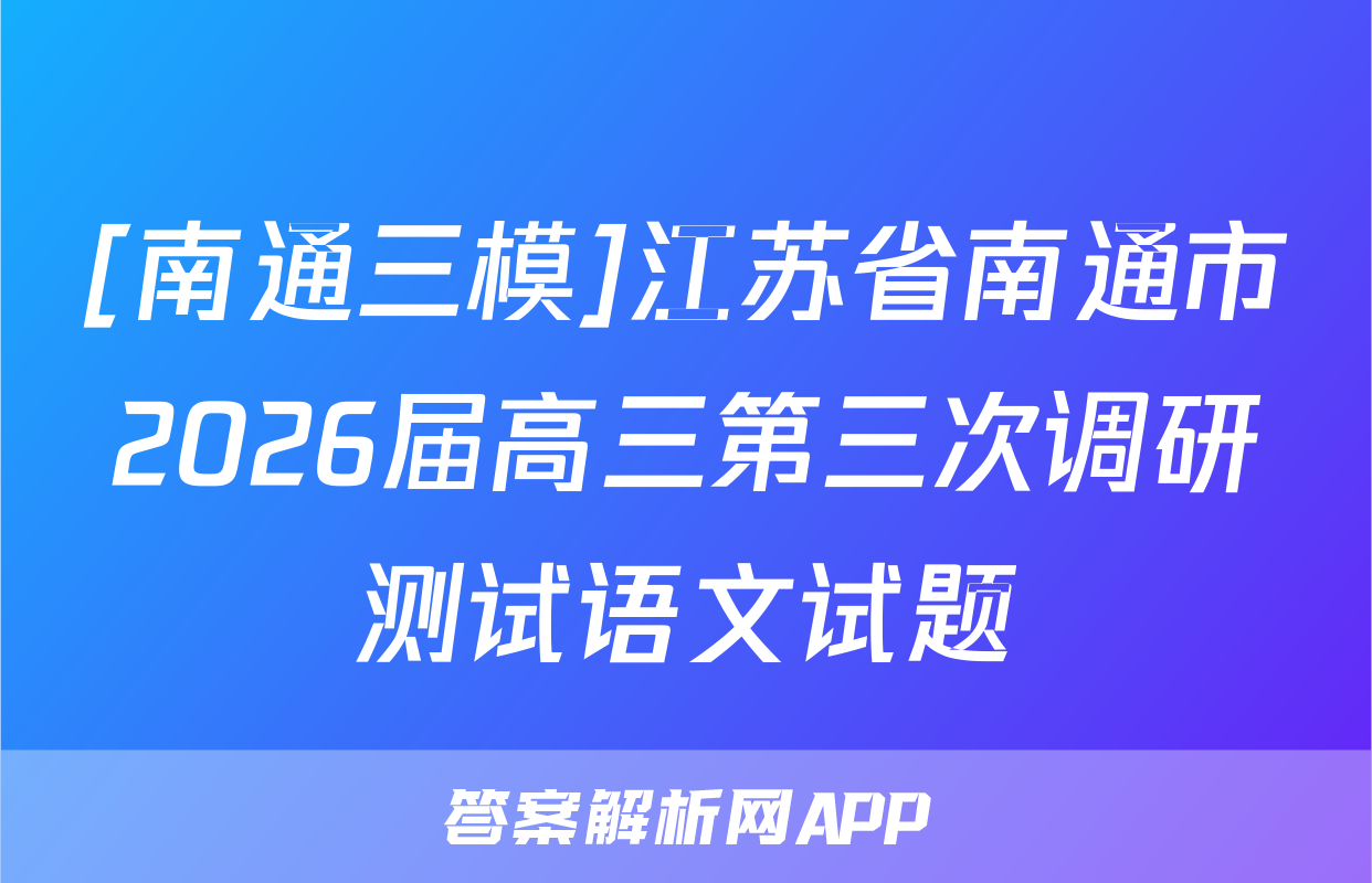 [南通三模]江苏省南通市2026届高三第三次调研测试语文试题