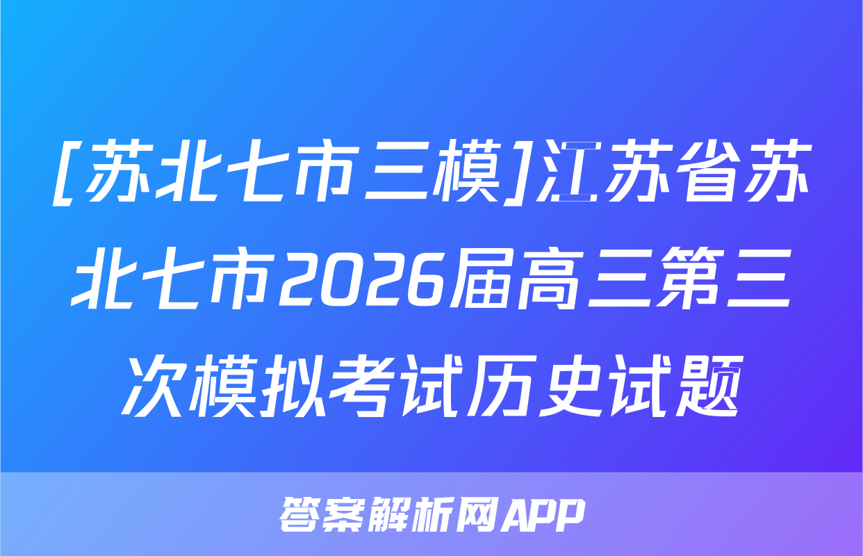 [苏北七市三模]江苏省苏北七市2026届高三第三次模拟考试历史试题