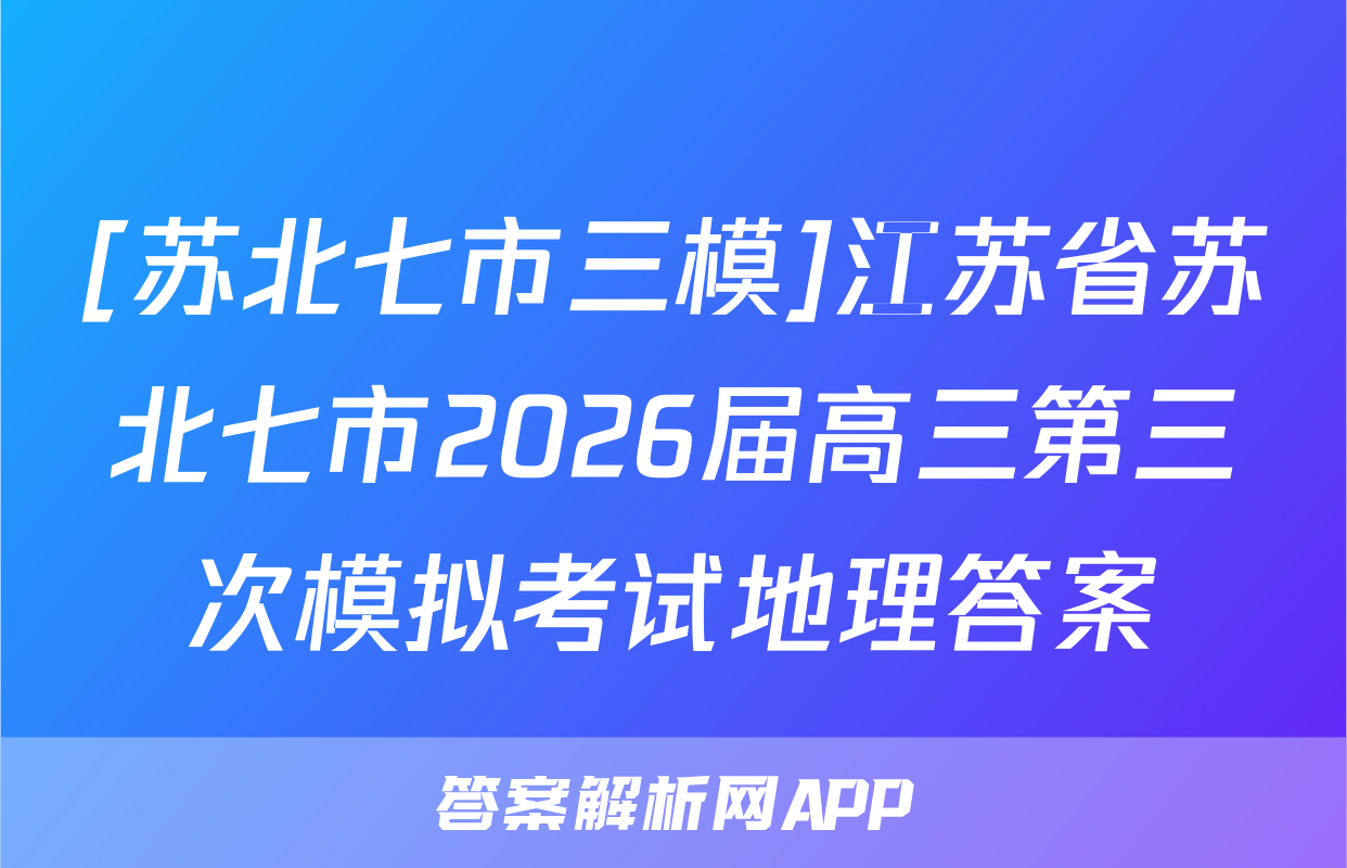 [苏北七市三模]江苏省苏北七市2026届高三第三次模拟考试地理答案