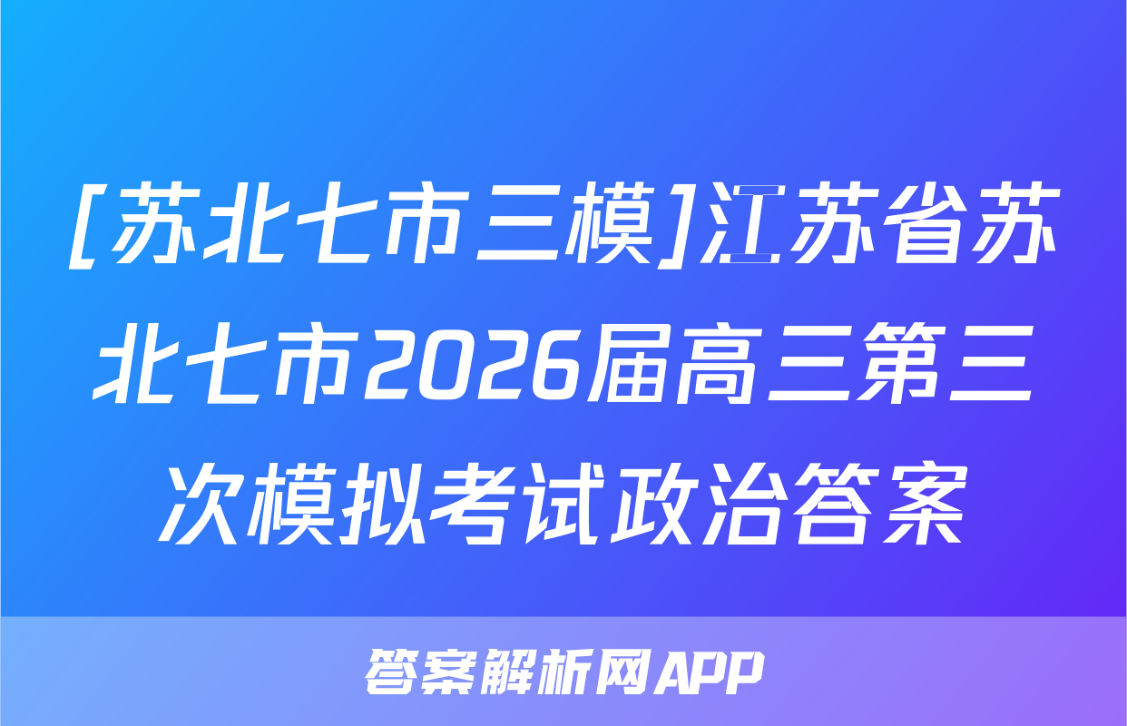 [苏北七市三模]江苏省苏北七市2026届高三第三次模拟考试政治答案