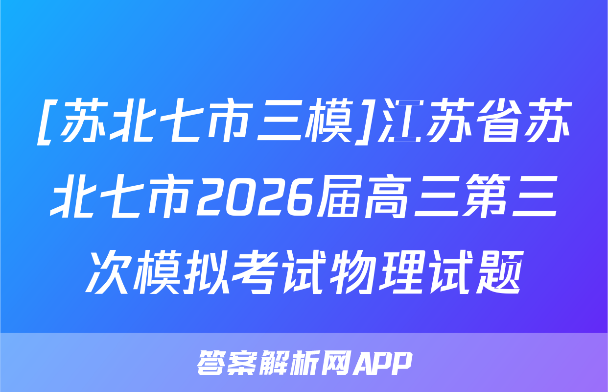 [苏北七市三模]江苏省苏北七市2026届高三第三次模拟考试物理试题