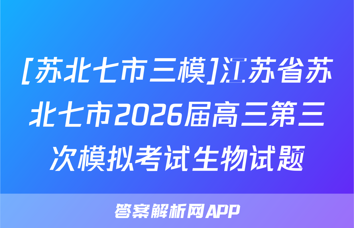 [苏北七市三模]江苏省苏北七市2026届高三第三次模拟考试生物试题