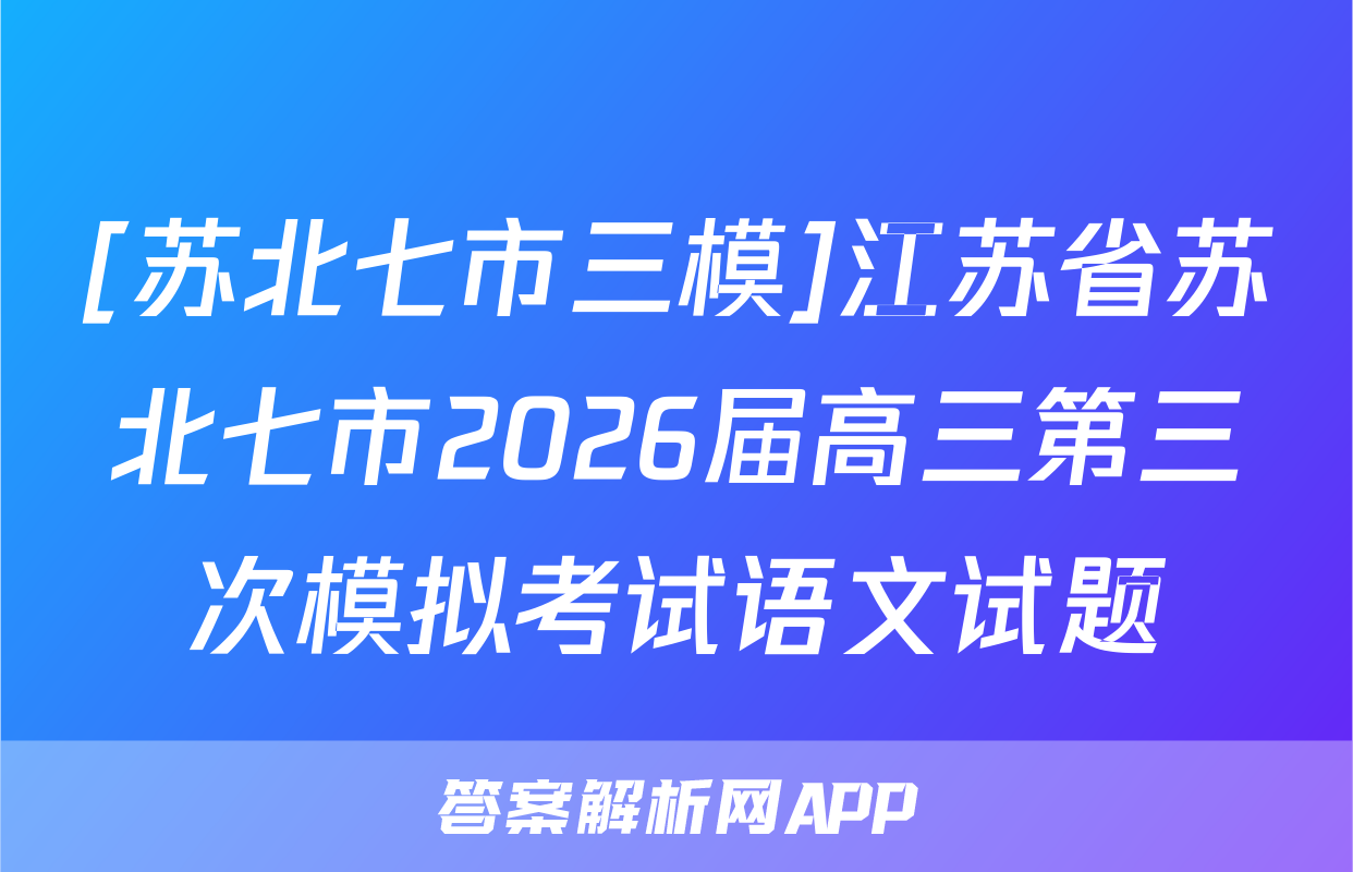 [苏北七市三模]江苏省苏北七市2026届高三第三次模拟考试语文试题
