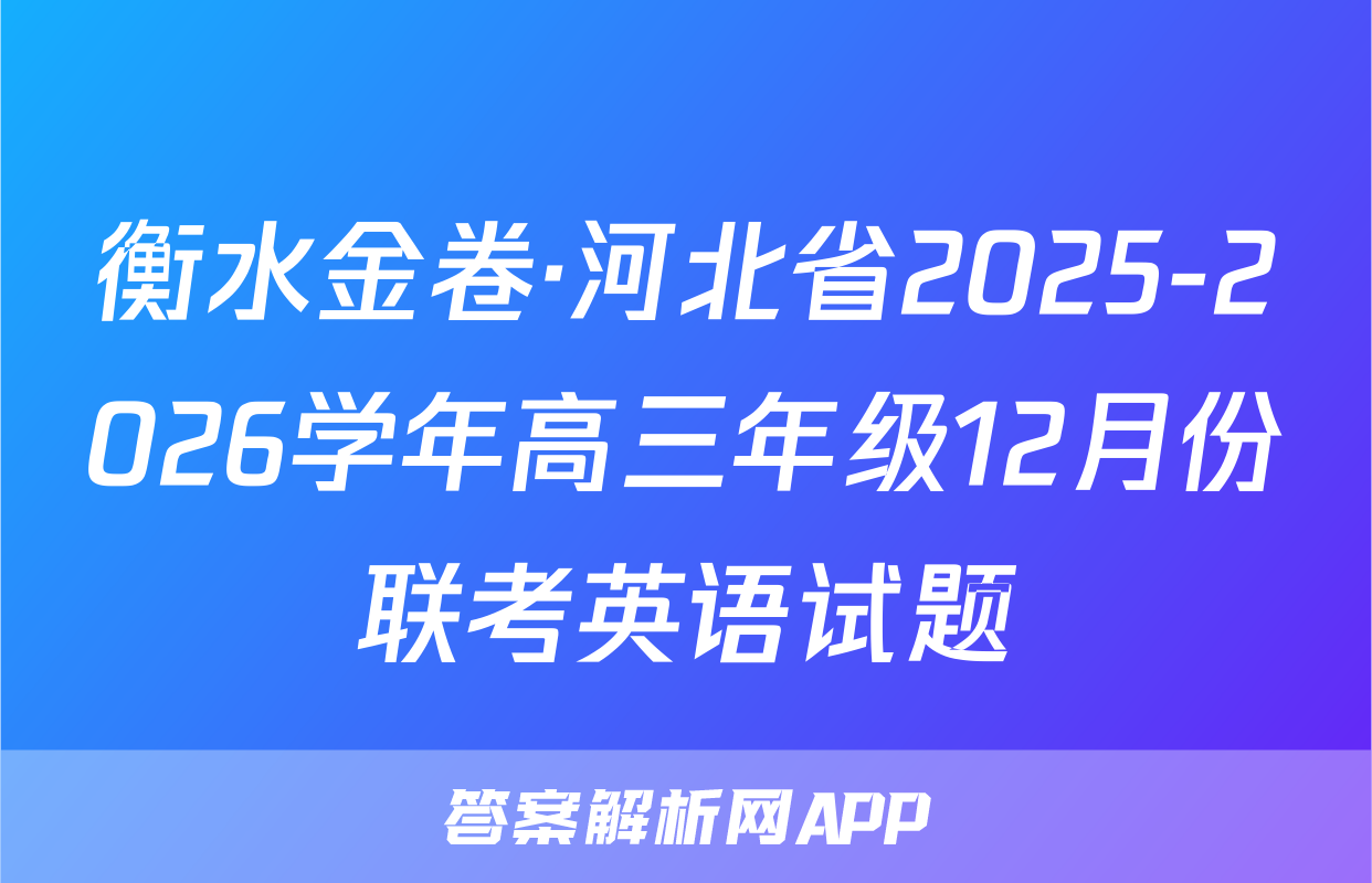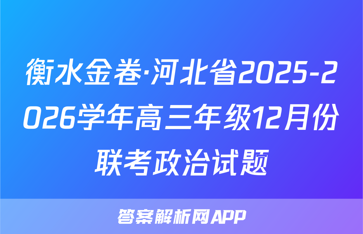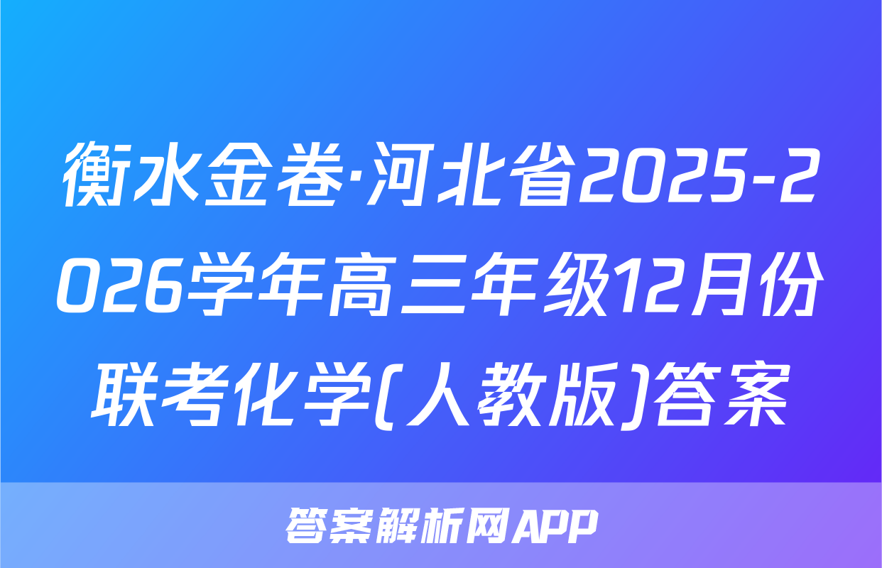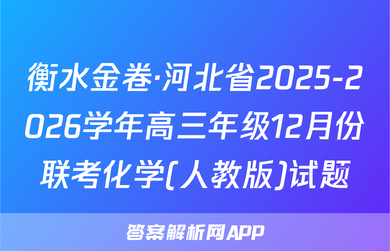 2025一2026学年高三年级12月份联考4.下列化学用语表述正确的是化学试卷A.CH3一CH2一CH一CH一CH3的化学名称:3-甲基-4-氯戊烷本试卷共8页,18题。全卷满分100分。考试用时75分钟。CH:Cl注意事项:B.聚丙烯的结构简式:ECH2一CH2一CH2n1.答题前,先将自己的姓名、准考证号等填写在答题卡上,并将准考证号条形码粘贴C.BeC,中Be原子的杂化轨道示意图:(◇在答题卡上的指定位置。D.CaO的电子式:汝:ca2*[g:J2.选择题的作答:每小题选出答案后,用2B铅笔把答题卡上对应题目的答案标号涂黑。写在试题卷、草稿纸和答题卡上的非答题区域均无效。5.氟气通过碎冰表面时发生反应F,十H,O一O℃HFO十HF。下列说法正确的是3.非选择题的作答:用签字笔直接写在答题卡上对应的答题区域内。写在试题卷、草A.HFO中F为十1价稿纸和答题卡上的非答题区域均无效。B.H2O、F2均为非极性分子C.H2O的沸点高于HF的沸点4.考试结束后,请将本试题卷和答题卡一并上交。D.F2可用浓氢氟酸与MnO2反应制取可能用到的相对原子质量:H1Be9O16C135.5Cu64Zn65Ag1086.下列反应过程的离子方程式书写正确的是Ce140A.向深蓝色硫酸四氨合铜溶液中滴加Na2S溶液,产生黑色沉淀:Cu2+十S2一CuSV一、选择题:本题共14小题,每小题3分,共42分。在每小题给出的四个选项中,只有一B.向K[Fe(CN)6]溶液中滴加FeCl2溶液,产生蓝色沉淀:K++Fe2++[Fe(CN)6]3项是符合题目要求的。1.中国历史文化悠久、文物众多,历史文化艺术价值极高。下列馆藏文物的主要成分为硅-KFe[Fe(CN)c]V酸盐的是C.NH,HCO,溶液与过量NaOH溶液共热,产生刺激性气味气体:NH时+OH△NH3个+H2OD.向草酸溶液中滴入酸性KMnO,溶液,振荡后溶液褪色:5H2C2O,+8H++MnO,—Mn2++10CO2A+9H2O7.已知反应:Zn+2HNO3+NH4NO3—N2个+Zn(NO3)2+3HO。设NA为阿伏加德A.铜鎏金狮B.后母戊鼎C.定窑白釉孩儿枕D.牡丹莲纹锦被面罗常数的值,下列说法正确的是2.下列说法正确的是A.生成标准状况下22.4LN2,该反应转移电子的数目为3NAA.“琢玉成器”的过程发生了氧化还原反应B.反应中的六种物质,固态时所形成晶体的晶体类型分别属于金属晶体和分子晶体B.“寸田结初果,秀若铜生绿”的“铜生绿”过程发生了置换反应C.1L0.1mol/LZn(NO3)2溶液中Zn2+的数目小于0.1NC.“神舟二十破云空,十载航天建伟功”,神州20的推进剂四氧化二氨是强还原剂D.H、N、O、Zn的电负性由大到小的顺序为N>O>H>ZnD.“取肥地黄三二十斤,净洗…捣绞取汁”,在实验室模拟“捣绞取汁”后分离的操作是过滤8.某兴趣小组设计如图所示的实验装置制备SO2并探究其化学性质,1、2、3和4处为蘸3.下列实验能达到相应实验目的的是有对应溶液的棉花团。下列说法错误的是A.试管a中最终有不溶物B.1、4两处溶液均褪色,并且褪色原理相同稀硫酸乙酸饱和溶液稀盐酸C.3处棉球表面出现黄色冷水D.实验可证明氧化性:I2>SO2>S瓷蒸馏水饱和合CaCO;Na2S203BaC2溶液型溶液Na,S溶液NaOH紫色石蕊溶液碘水B.制取Fe(OH)3C.证明酸性:HCl>H2CO3D.分离NHCI和A.制取乙酸乙酯胶体>H2 SiO1的混合物化学试题第1页(共8页)化学试题第2页(共8页)人教版