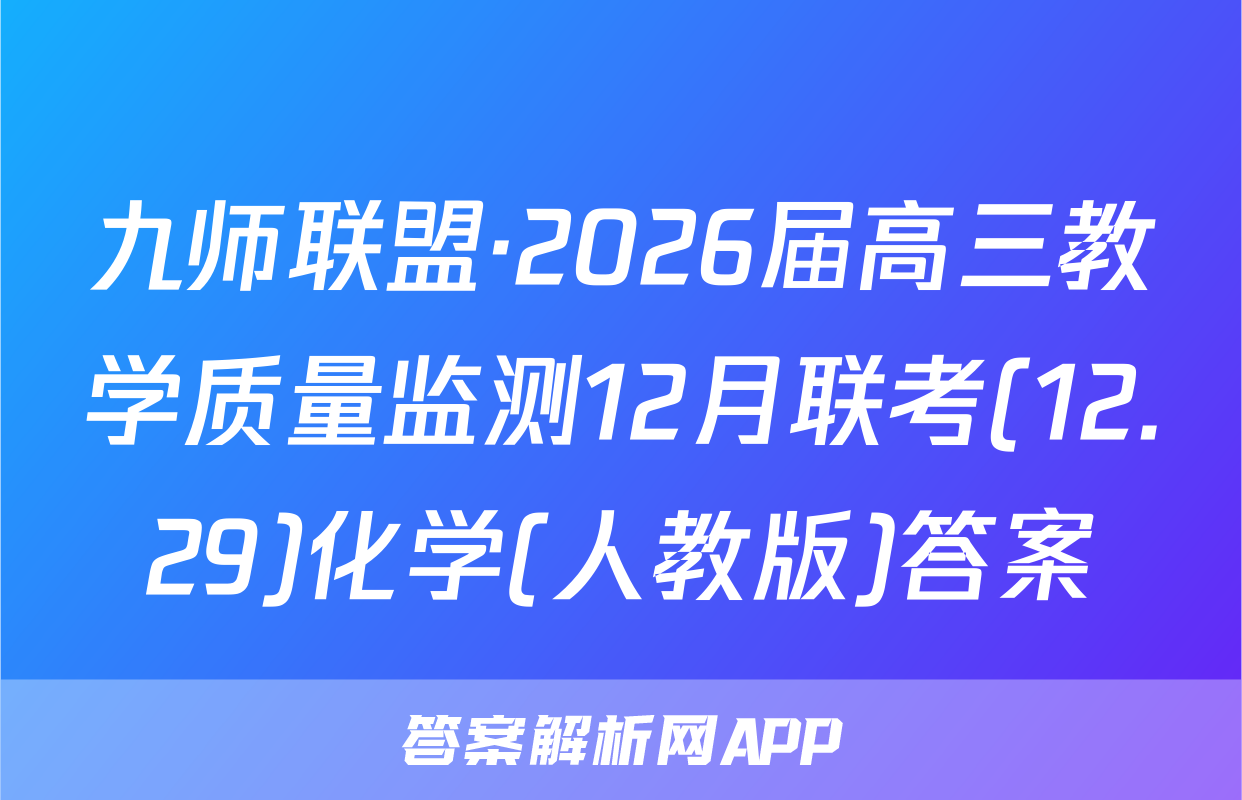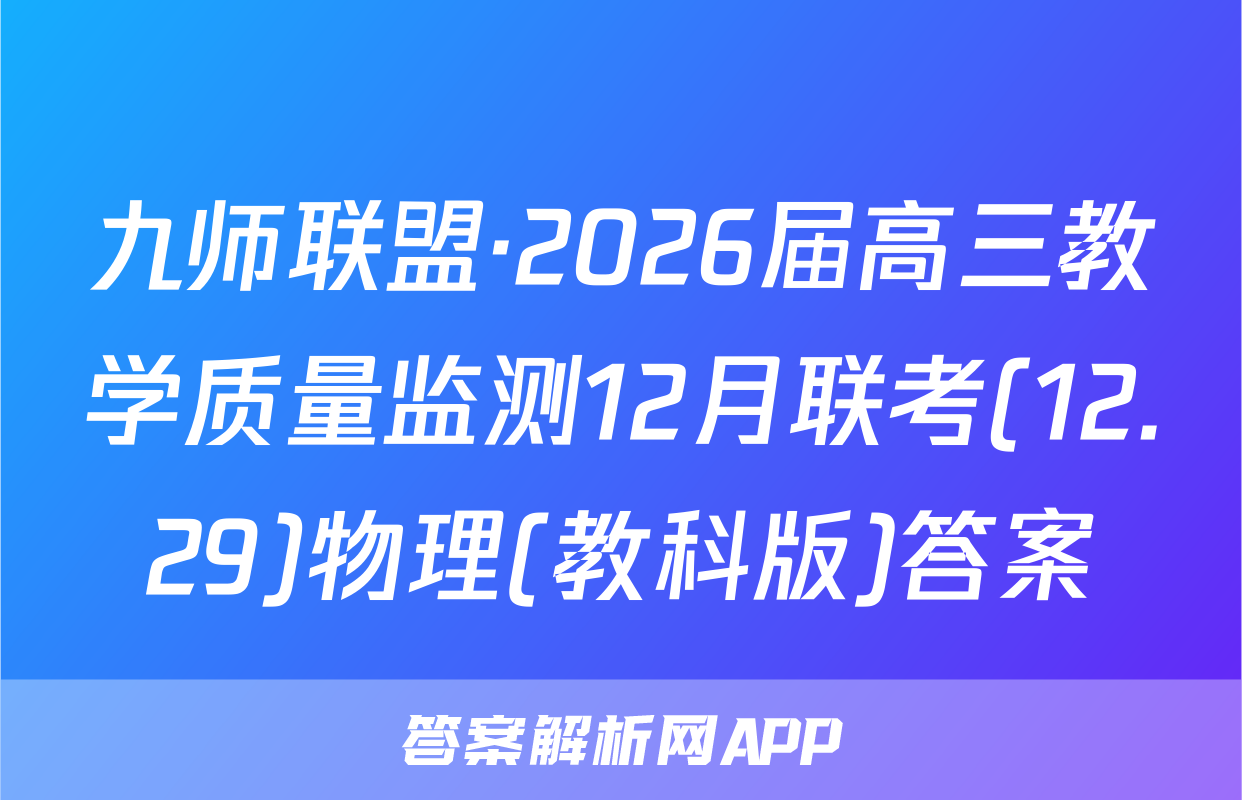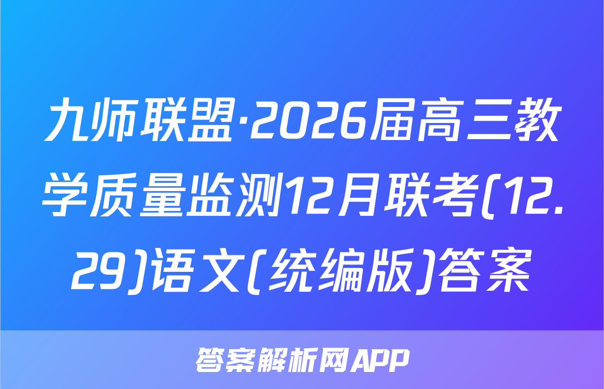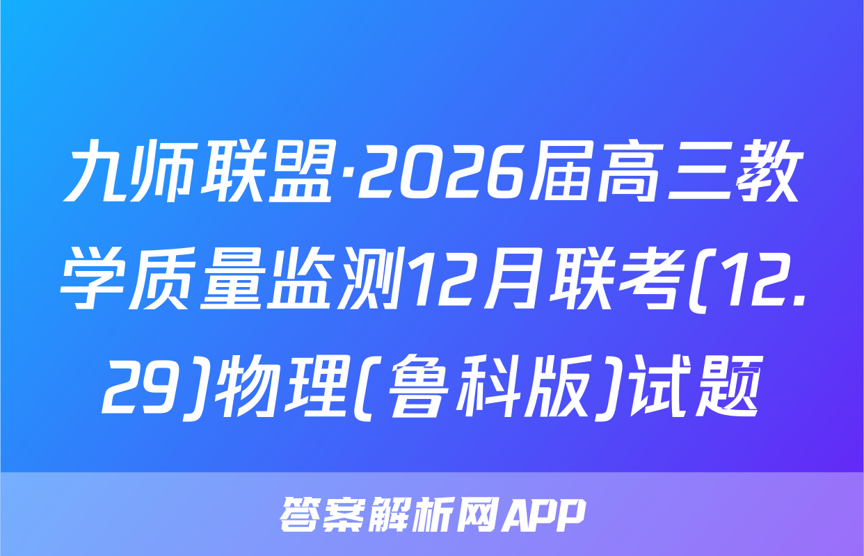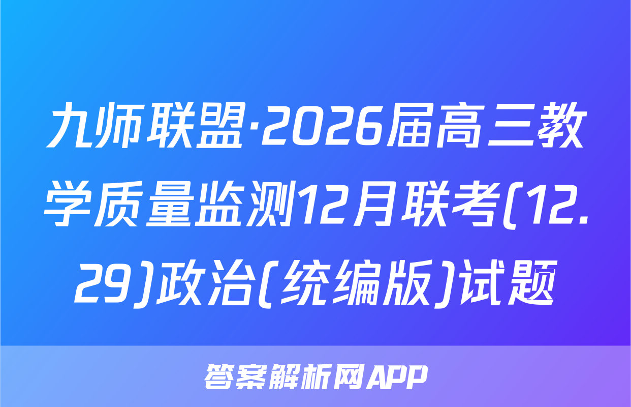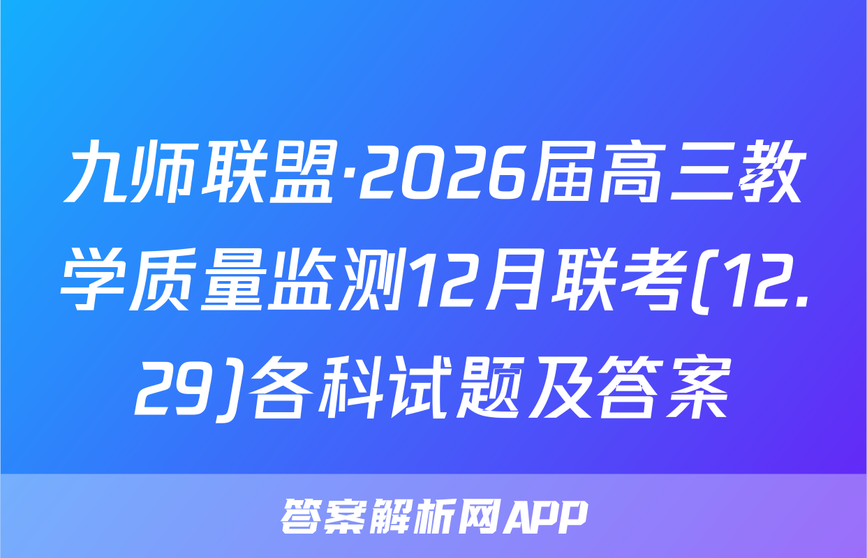 九师联盟·2026届高三教学质量监测12月联考(12.29)于2025-11-28开考,答案解析网将在考试结束后第一时间更新各科试题及答案。请保持关注。各科试题及答案汇总如下。