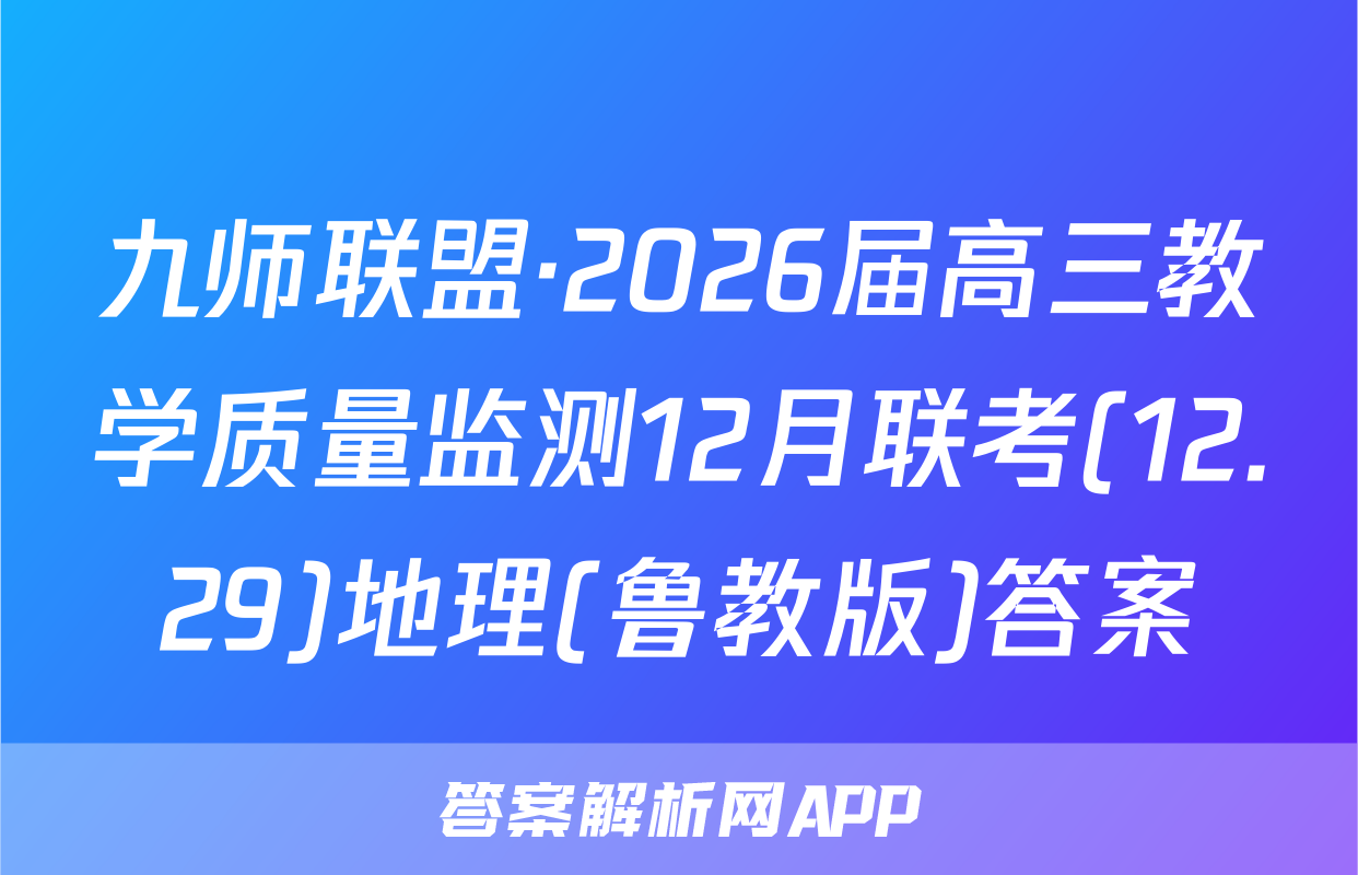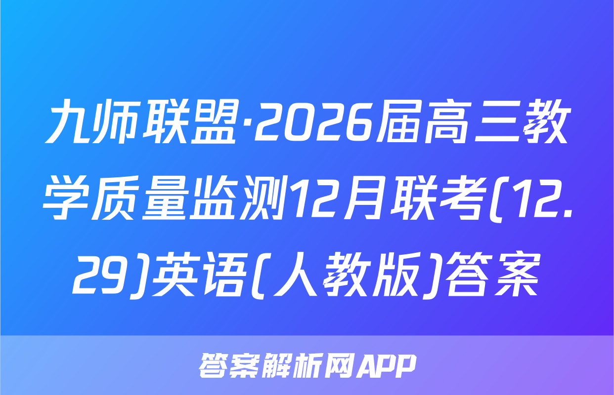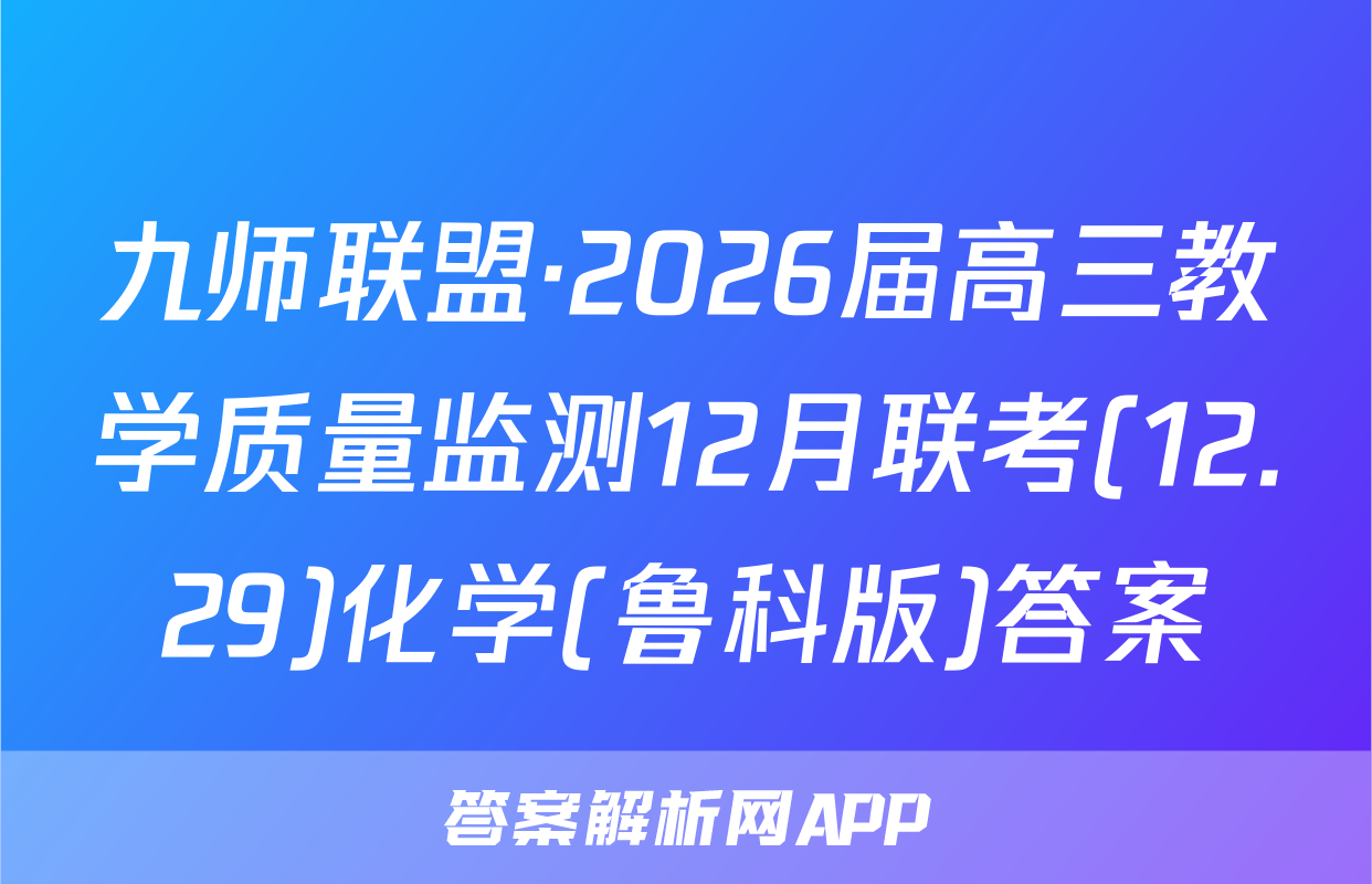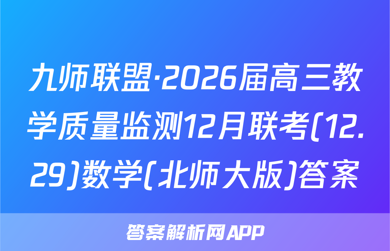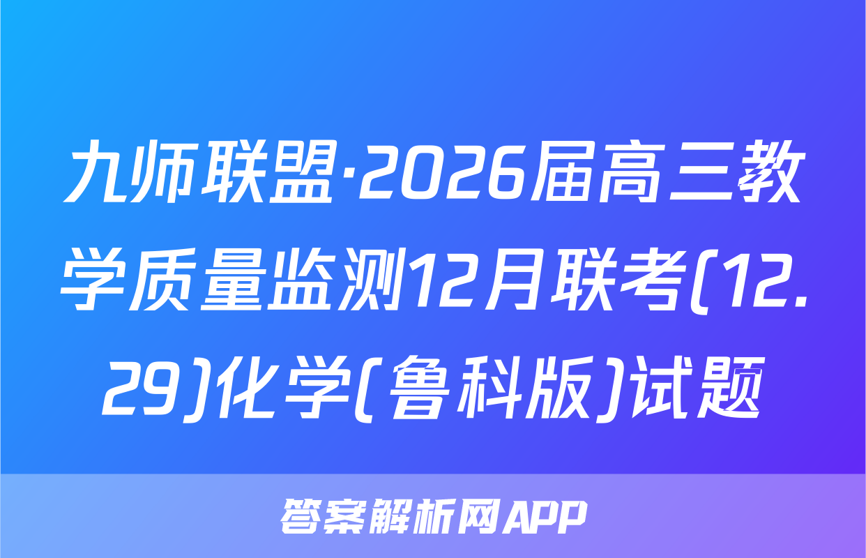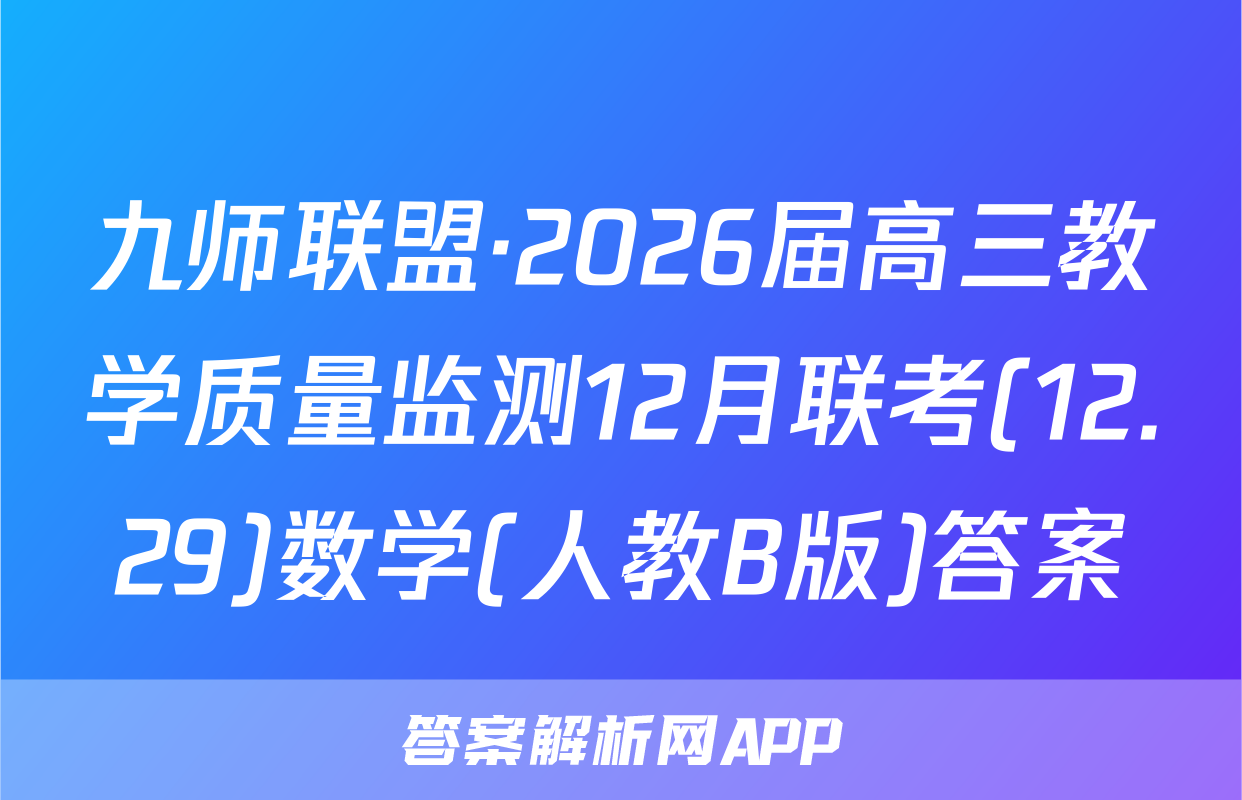 九师联盟·2026届高三教学质量监测12月联考(12.29)于2025-11-28开考,答案解析网将在考试结束后第一时间更新各科试题及答案。请保持关注。各科试题及答案汇总如下。