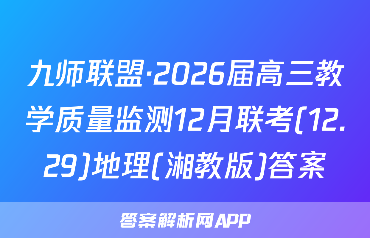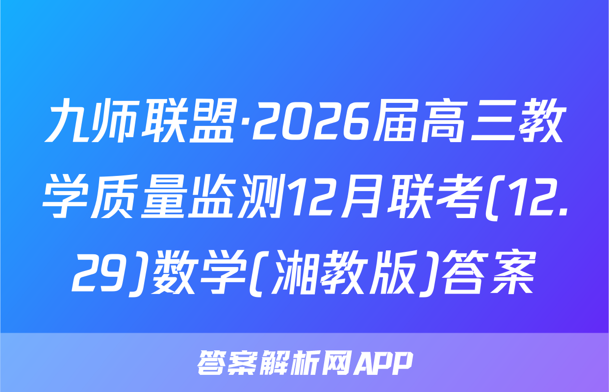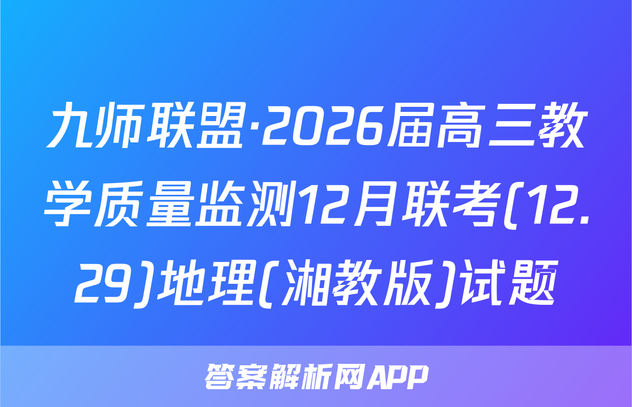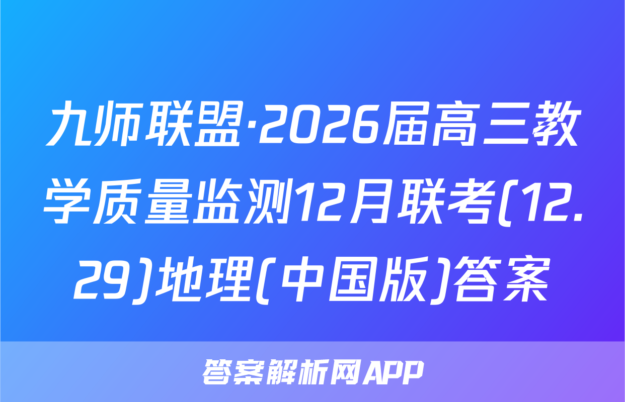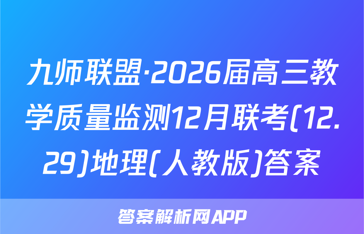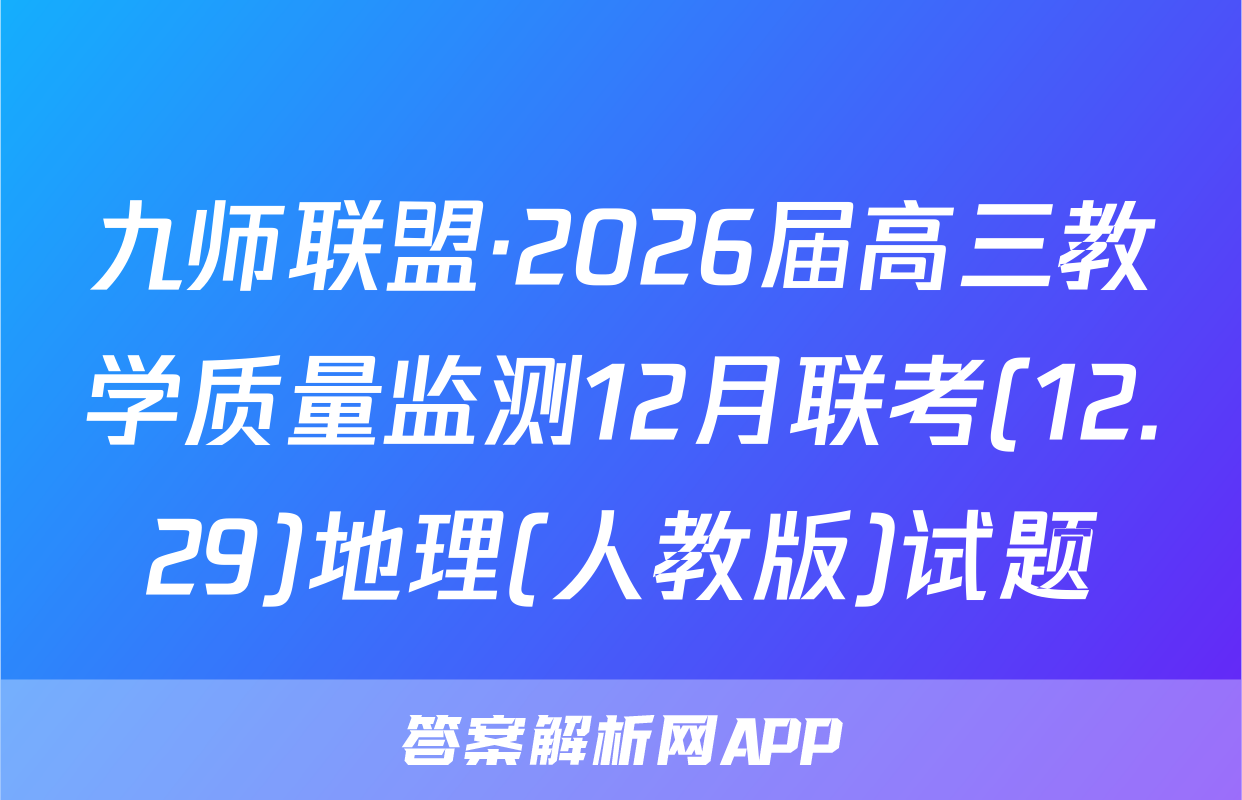 九师联盟·2026届高三教学质量监测12月联考(12.29)于2025-11-28开考,答案解析网将在考试结束后第一时间更新各科试题及答案。请保持关注。各科试题及答案汇总如下。