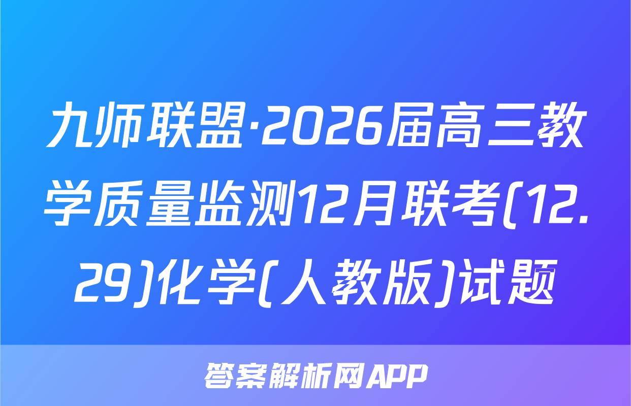 九师联盟·2026届高三教学质量监测12月联考(12.29)化学(人教版)试题