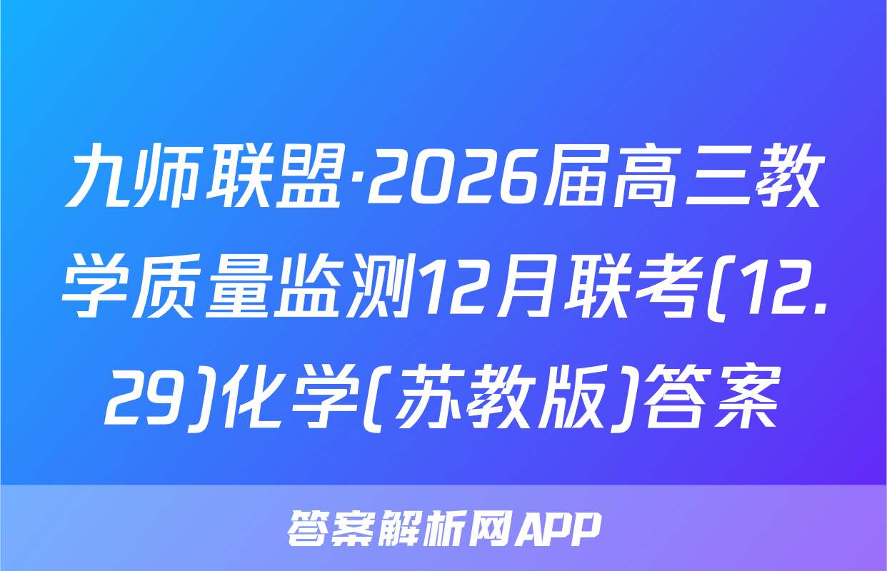 九师联盟·2026届高三教学质量监测12月联考(12.29)化学(人教版)答案