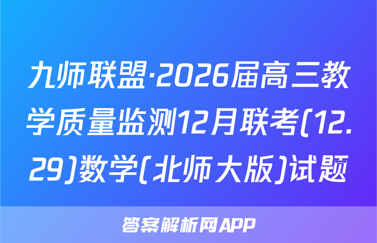 九师联盟·2026届高三教学质量监测12月联考(12.29)数学(北师大版)试题