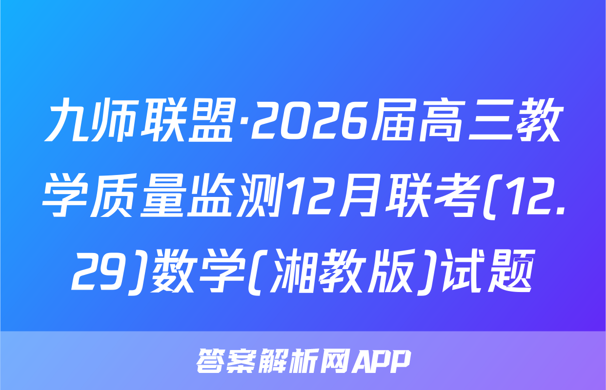 九师联盟·2026届高三教学质量监测12月联考(12.29)数学(湘教版)试题