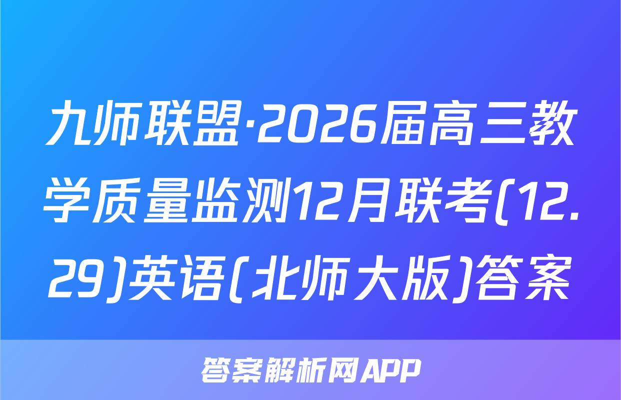 九师联盟·2026届高三教学质量监测12月联考(12.29)英语(北师大版)答案