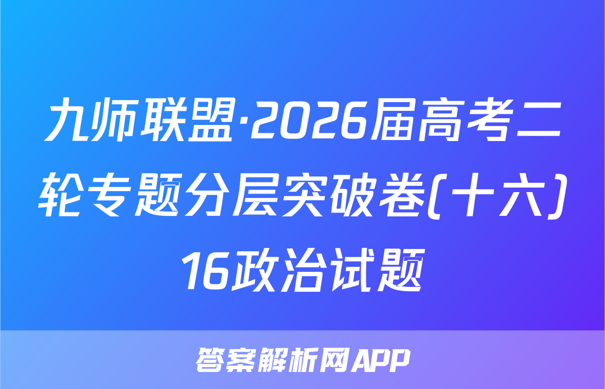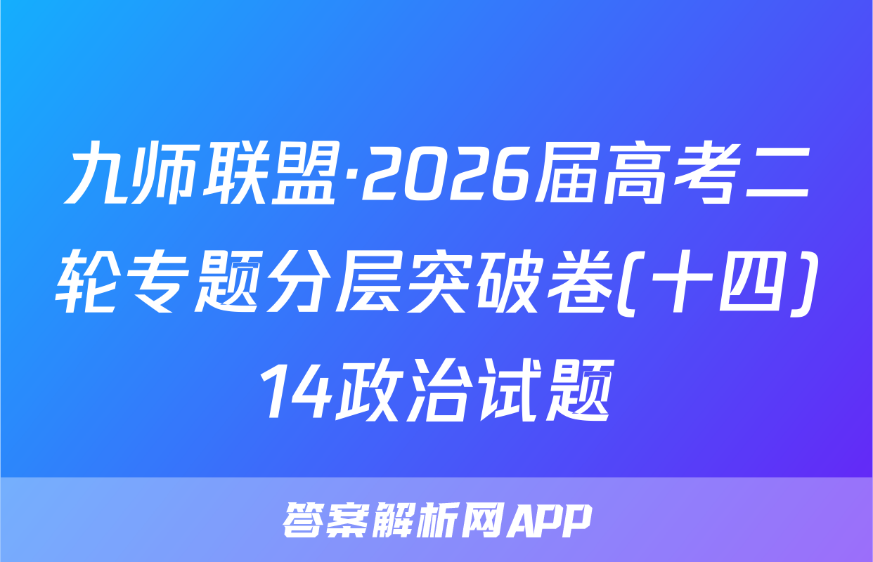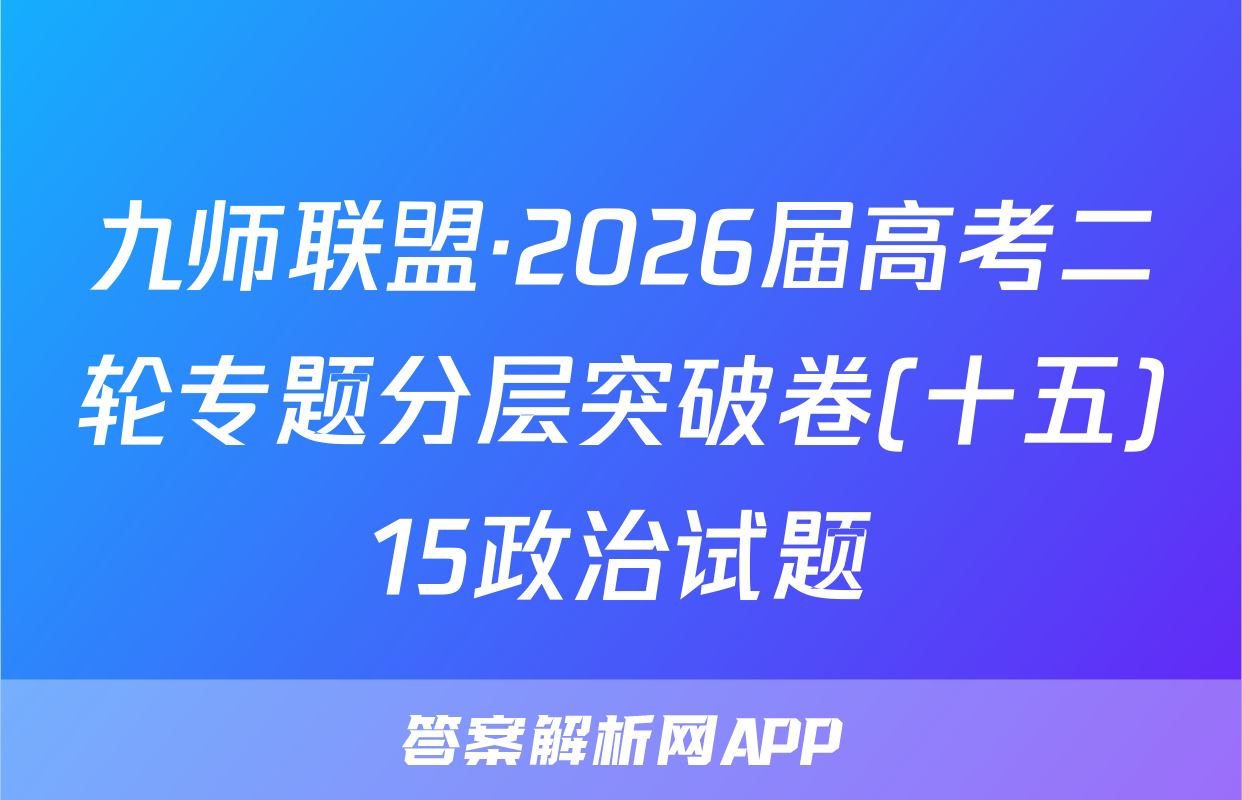 5,2023年1月,我国实标使用外资金额1276.9亿元,同比增长145%,从行业看,精造实际使用外资2026届高考二轮专题分层突破卷·思想政治(十四)同比增长04以,高技术产业实标使用外资同比增长628%,其中,高技术制造业同比增长1么%商技术服务业同比增长9.%,从区蚊分布看,东都,中部。西部地区实际使用外资同比分别增长13.4%、25.9%、21,6%。由此可见,我国D放宽市场准入,推动高水平贸易自由化②不断降低外商投资风险,增强经济的韧性和活力⊙增专题十四经济全球化国际组织强创新能力,筑牢实体经济的发展根基④提高开放水平,推进现代化经济体系建设A.①②B.①③C.②④D.③④6,2025年上半年,中国服务进出口总额达到3.9万亿元(人民币,下同),同比增长8%,规模创历史同期考生注意:新高,服务出口在对外贸易总出日中的吉比达到1.5%,比上年同期提升0,7个百分点。其中,知识1.本卷总分100分2.本专题测试的考点主要包括:经济全球化,日益开放的全球经济;经济全球化与中国:联合国,日益密集型服务出口8650.4亿元,增长7,8%。这表明重要的国际组织,区城性国际组织;中国与联合国,中国与新兴国际组织。①我国是世界生产全球化的主要参与者②我国服务业对外开放的水平不断提高③我国外贸结构持续优化,质量效益提升④我国已经形成了服务出口竞争新优势A.①②一、选择题:本大题共15小题,每小题4分,共60分。在每小题给出的四个选项中,只有一项是符合题目B.①④C.②③D.③④要求的。7。多年来,共建“一带一路”让马尔代夫有了跨海大桥,非洲有了电气化铁路,希腊比雷埃夫斯港重焕生1,互联网真正让世界变成了地球村,让国际社会越来越成为你中有我、我中有你的命运共同体。随着互机。秘鲁钱凯港成为南美首个智慧和绿色港口,雅万高铁让印尼迈入“高铁时代”,中老铁路让老挝“铁联网的快速发展,网络空间治理面临的问题日益突出。平提出构建网络空间命运共同体重要理路梦”成直。鲁班工坊、菌草技术,净水设备改造、太阳能发电站等一大批惠民项目极大改善当地生活条件。由此可见,“一带一路”念,深人阐释了全球互联网发展治理一系列重大原则和主张。构建网络空间命运共同体的提出①顺应了经济全球化的历史大势②旨在持续推动国际关系民主化③践行了共建共享的全球治理①促进了全球投资大便利、贸易大繁荣②推动了经济全球化更加普惠包容共享③彰显了国际经济新秩序的巨大优越性④有力推动南北方国家发展差距的缩小观④促成了各国网络空间共同繁荣A.①②B.①③C.②④D.③④A.①③B.①④C.②③D.②④8,近年来,数字丝绸之路建设取得显著成就。截至2023年10月,中国已与17个国家签署“数字丝绸2.俄乌爆发冲突后,以美国为首的西方国家对俄实施制裁,但俄罗斯是重要的能源出口国,受此影响,全之路”合作谅解备忘录,与23个国家建立“丝路电商”双边合作机制。中国与多国共建数字丝绸球油气价格飙升,对俄罗斯能源依赖较大的欧洲部分国家诸多商品出现价格上涨。为缓解这一压力,之路相关国家正在寻求在俄罗斯之外获得更多天然气。这给我们的启示是①拓展了我国对外开放领域,推动中国与沿线国家共同繁荣②为沿线国家创造了更广阔的合作空①贸易保护主义损害全球经济的健康发展②经济全球化的深化发展给各国带来了诸多挑战③经间,促进世界经济的增长③主导沿线国家合作,推动世界经济朝着合作共赢方向发展④推动南南济全球化已沦为西方国家推行霸权主义和强权政治的工具④经济全球化在一定程度上加剧了全球合作,打造南南合作的新样板和新模式经济的不稳定性A.①②B.①③C.②④D.③④A.①③B.①④C.②③D.②④9.2024年11月,首届世界古典学大会在北京召开。本届大会主题为“古典文明与现代世界”,旨在从古3.2025年9月21日,第二十二届中国一东盟博览会在广西南宁落幕。为期5天的东博会吸引了来自全球60个典文明的研究视域出发,回溯人类思想之源、总结人类历史智慧,为加强文明交流互鉴夯实学理根基,国家和地区的3260家企业参展,累计参展人次达22.6万,创历史新高。截至9月20日,据不完全统计,本为解决现代世界问题提供智慧启示。来自五大洲30多个国家和地区的400多位中外嘉宾与会。世界届东博会共取得成果超700项,其中经贸项目签约超500项,多领域、多形式成果超270项。这说明古典学大会①我国坚持市场多元化战略,不断优化出口结构②中国与东盟经济融合持续加深,经贸合作紧密①是世界性的、专业性的、政府间的国际组织②为古典学乃至人类文明的交流互鉴提供崭新平台③经济全球化使国际竞争更加激烈④我国顺应经济全球化的趋势,不断提高开放型经济水平③为世界提供了熔铸古今、汇通中西文明成果的珍贵机会④是联合国的专门机构,在古典文明的研A.①②B.①③C.②④D.③④究方面起主导作用4.美国制造业联盟敦促美国政府采取措施,阻止从墨西哥进口低价中国汽车。近年来,美方设置重重障A.①②B.①④C.②③D.③④碍,加征关税、限制参加政府采购、采取歧视性补贴政策等,严重阻碍中国汽车进入美国市场。与之形10.2025年3月24日,联合国安理会举行乌克兰问题会议并通过决议,呼吁迅速结束俄乌冲突,实现持成鲜明对比的是,中国始终向全球汽车企业敞开大门。可见久和平。中国代表指出,联合国宪章宗旨和原则