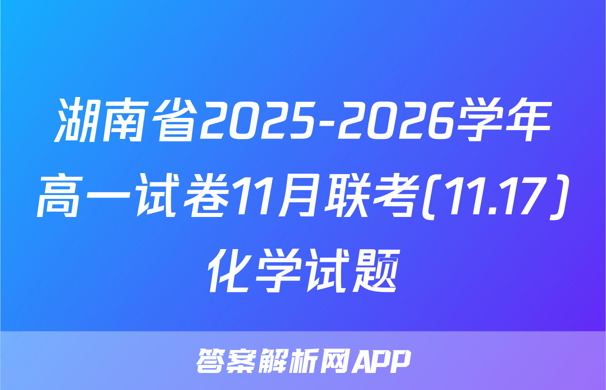 湖南省2025-2026学年高一试卷11月联考(11.17)化学试题
