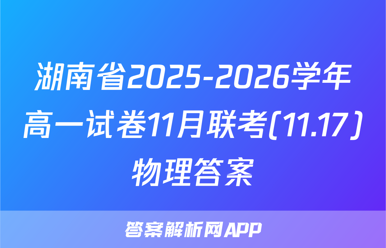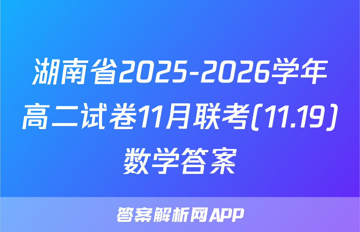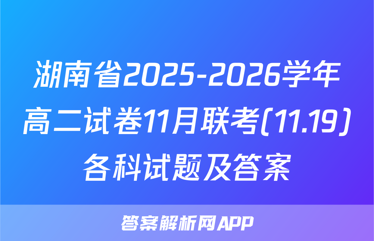 湖南省2025-2026学年高二试卷11月联考(11.19)于2025-11-03开考,答案解析网将在考试结束后第一时间更新各科试题及答案。请保持关注。各科试题及答案汇总如下。