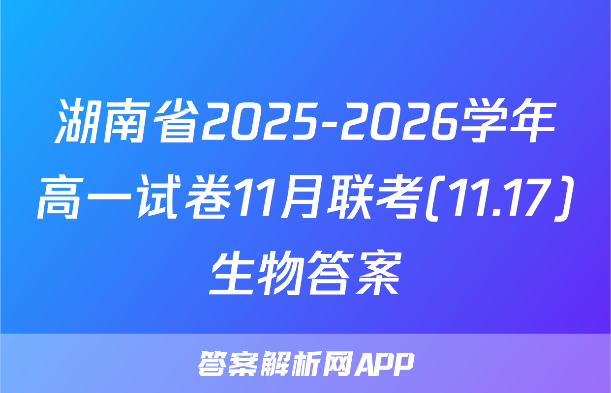 湖南省2025-2026学年高一试卷11月联考(11.17)生物答案