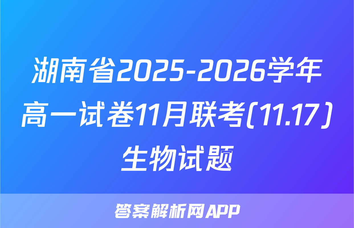 湖南省2025-2026学年高一试卷11月联考(11.17)生物试题