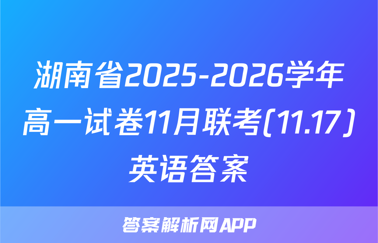 湖南省2025-2026学年高一试卷11月联考(11.17)英语试题