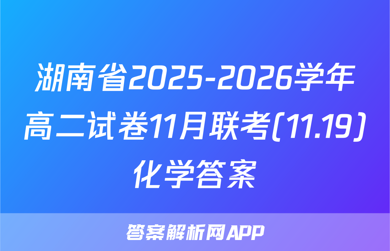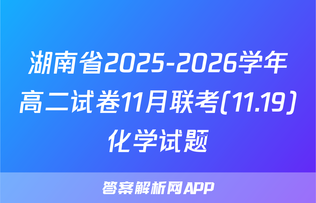 湖南省2025-2026学年高二试卷11月联考(11.19)化学试题