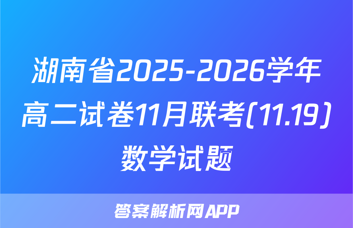 湖南省2025-2026学年高二试卷11月联考(11.19)数学试题