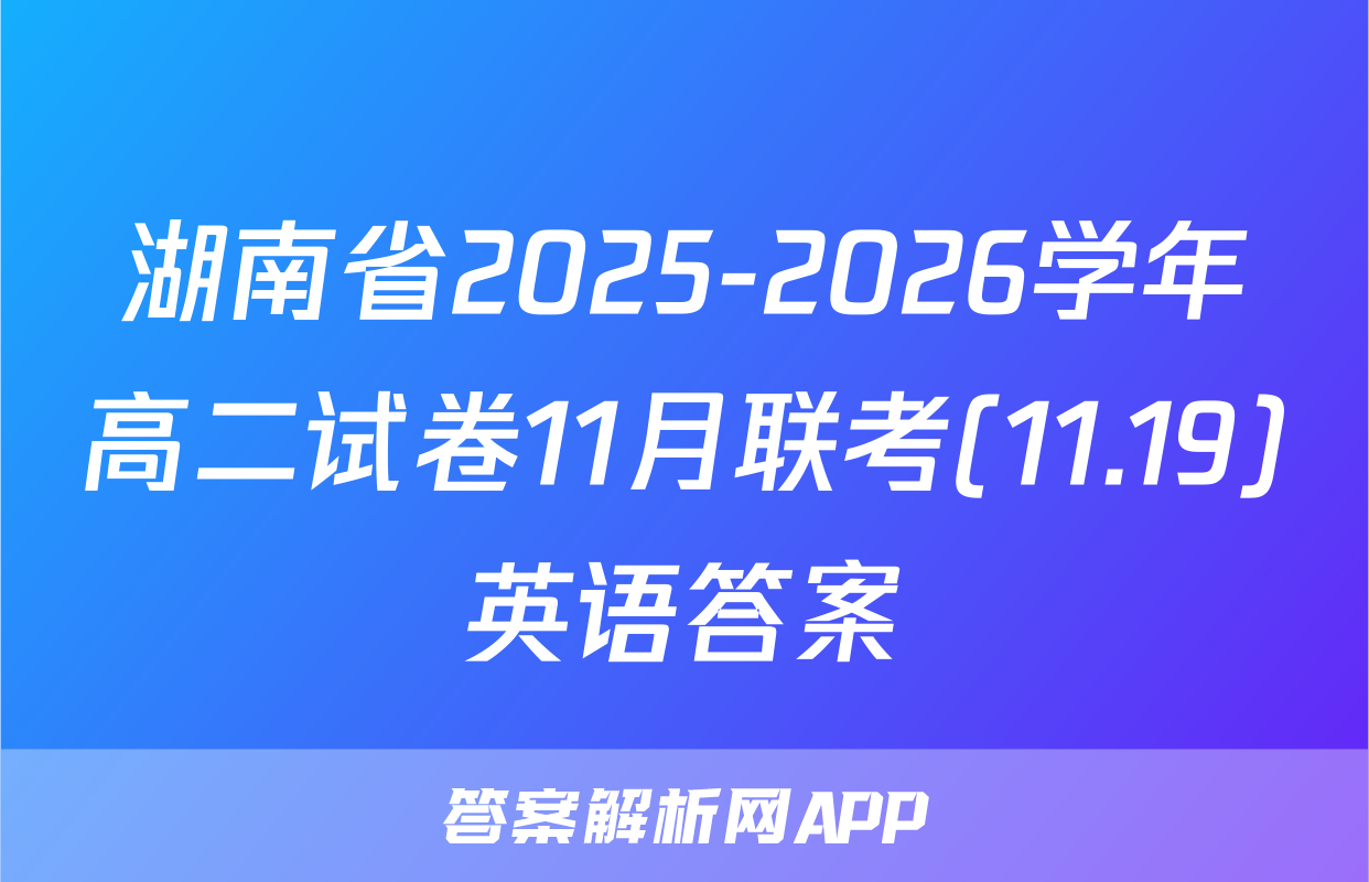 湖南省2025-2026学年高二试卷11月联考(11.19)英语试题